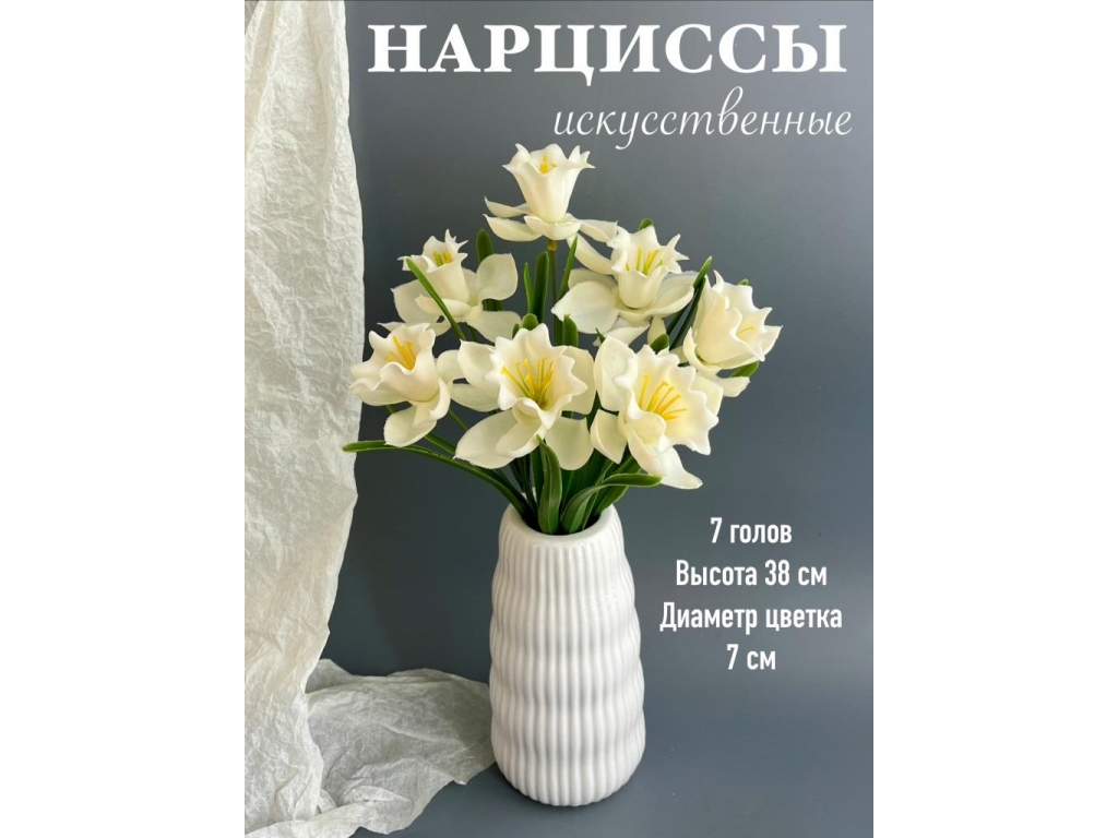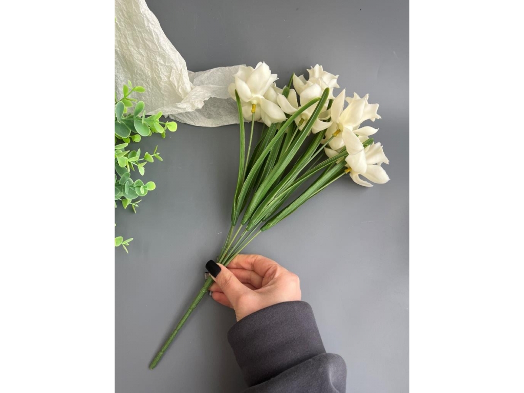 Букет зелени нарцисс 7 веток, 38 см, белый