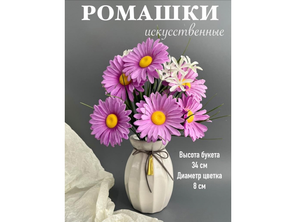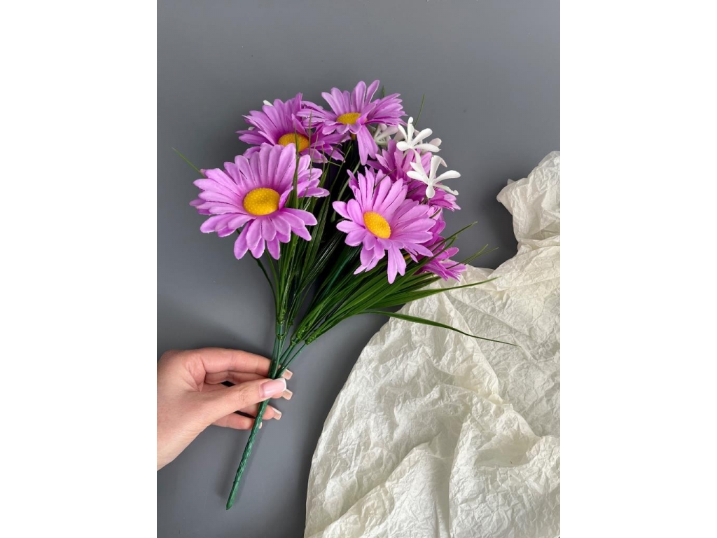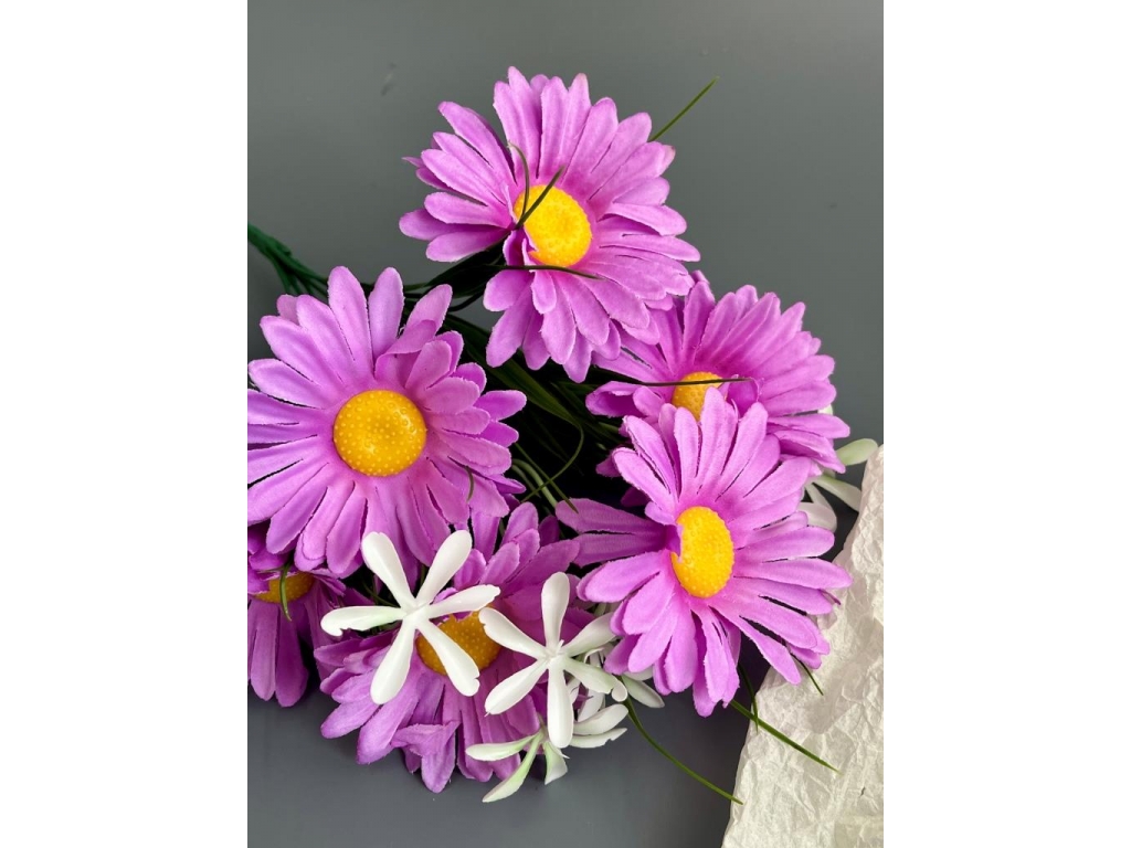 Ромашки в букете 6 голов с мелкоцветом, 34 см, сиреневый