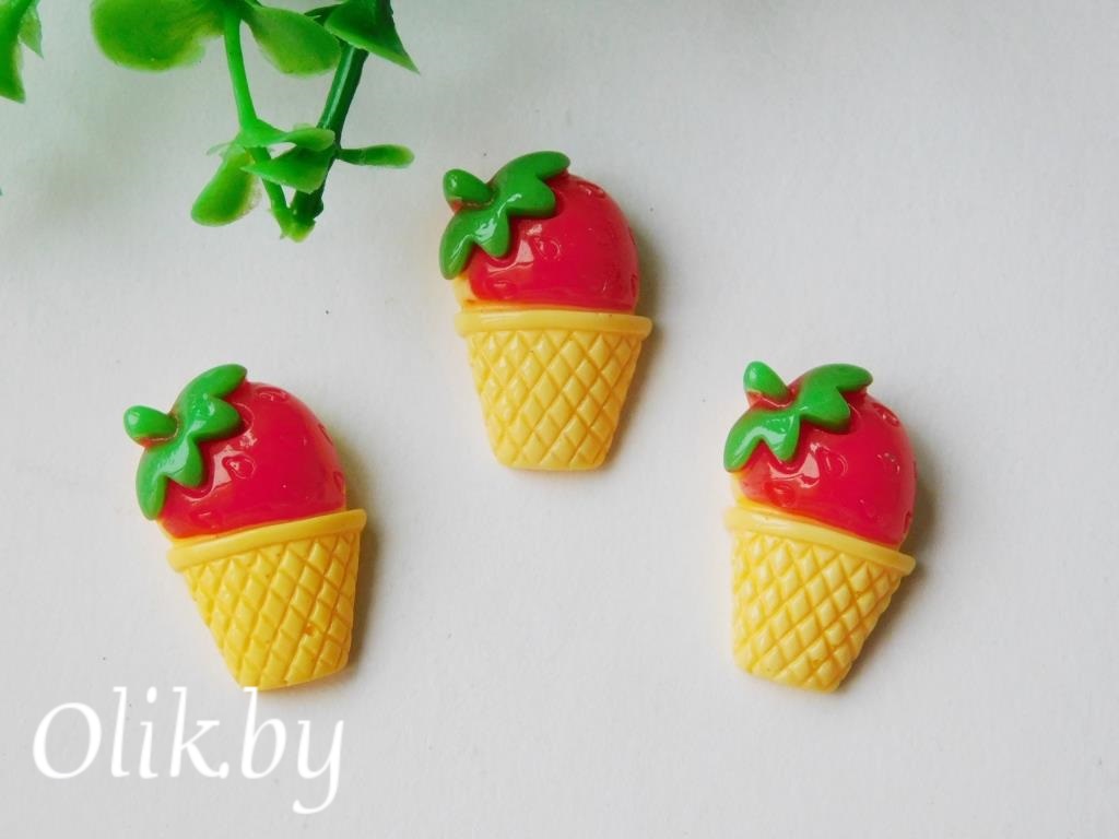 Кабошон "Корзиночка с клубничкой" 1.3см х 2см