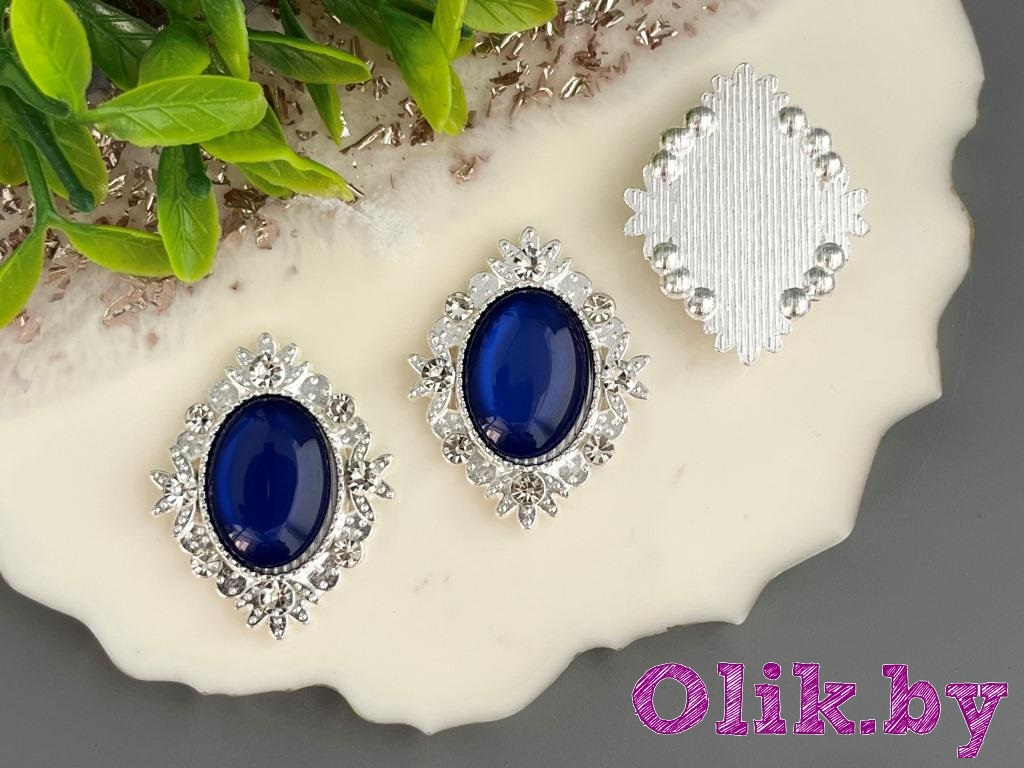 Серединка ювелирная 2,5*3,2 см, серебро/синий №5