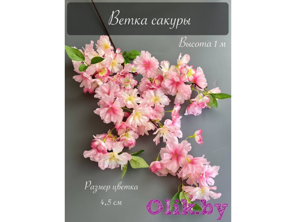 Ветка сакуры тройная, 102 см, нежно-розовый