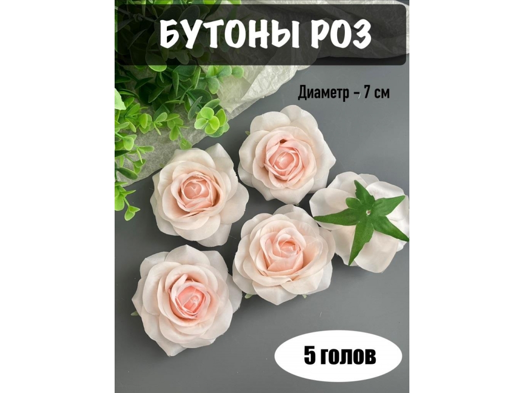 Головы бутоны роз, d-7 см, нежно-розовый, 5 шт