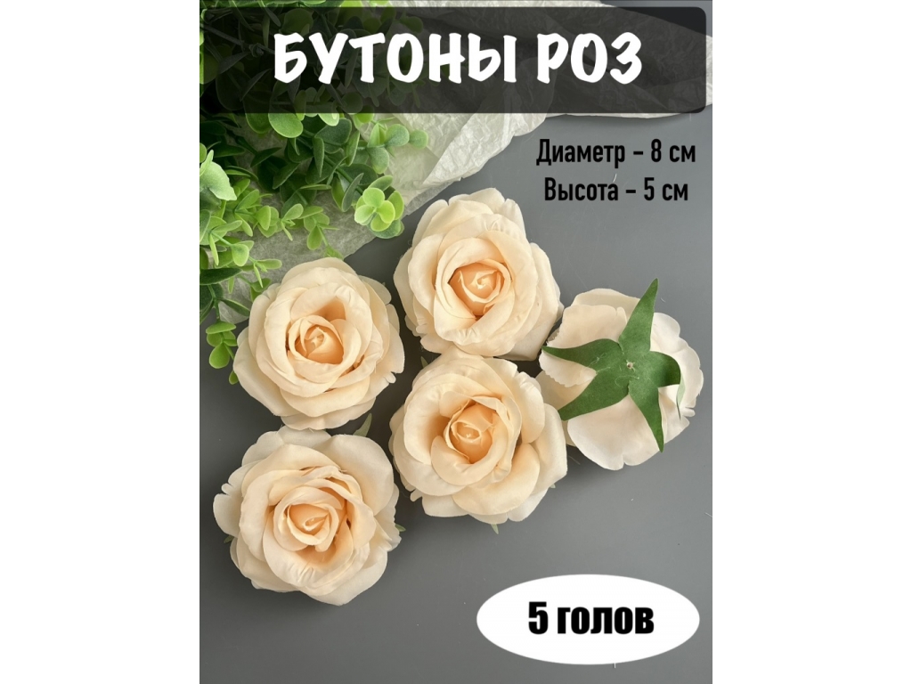 Головы бутоны роз, d-8 см, персиковый, 5 шт