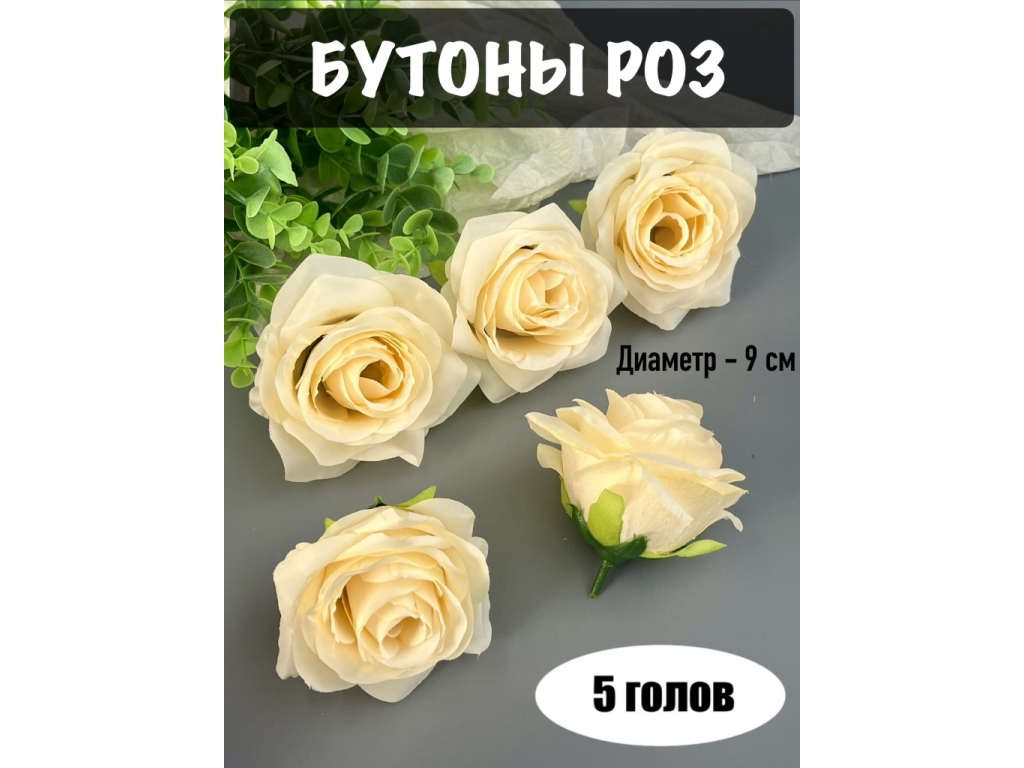 Головы бутоны роз, d-9 см, кремовый, 5 шт