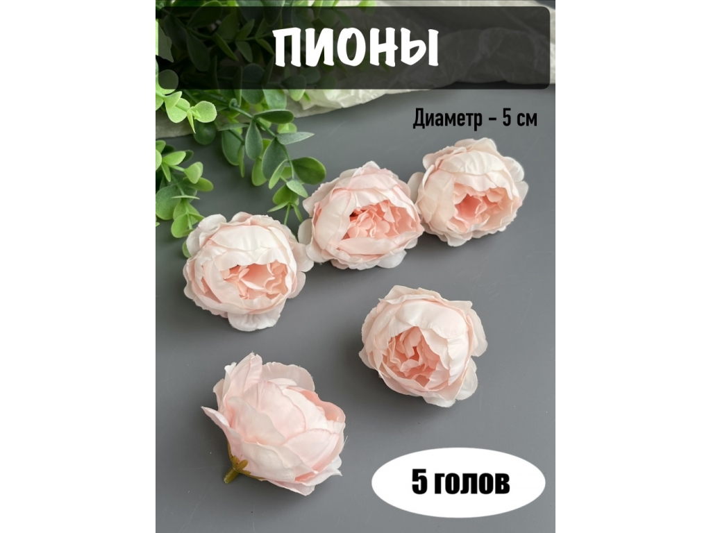 Головы пионов, d-5 см, нежно-розовый, 5 шт