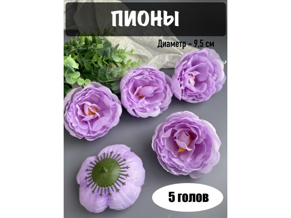 Головы пионов, d-9,5 см, нежно-фиолетовый, 5 шт