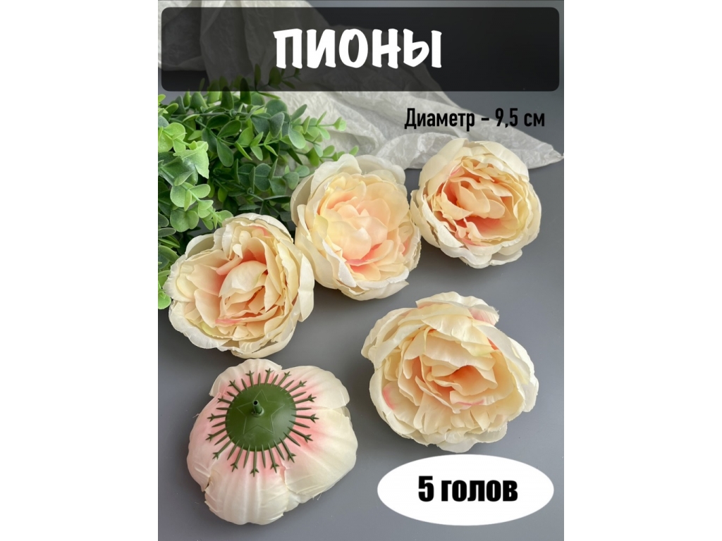 Головы пионов, d-9,5 см, персиковый, 5 шт