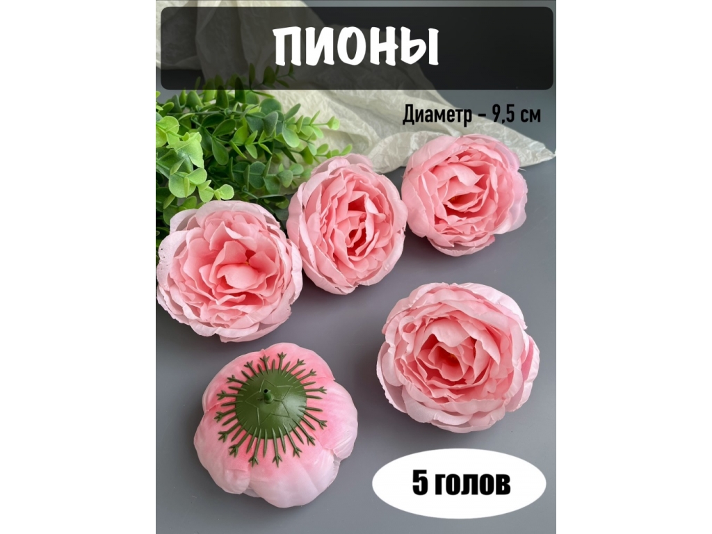 Головы пионов, d-9,5 см, розовый, 5 шт