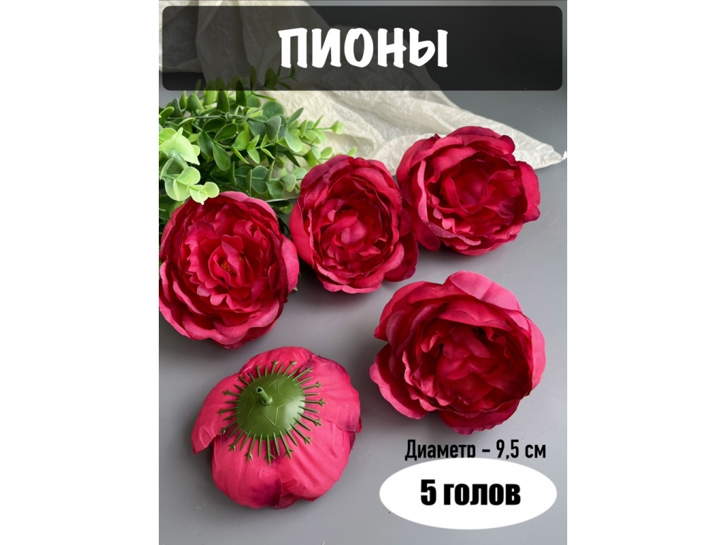Головы пионов, d-9,5 см, темно-малиновый, 5 шт