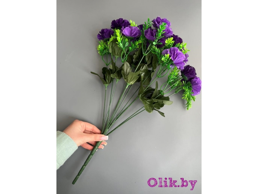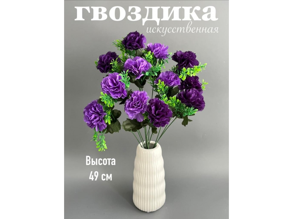 Букет гвоздики 12 веток, 49 см, фиолетовый