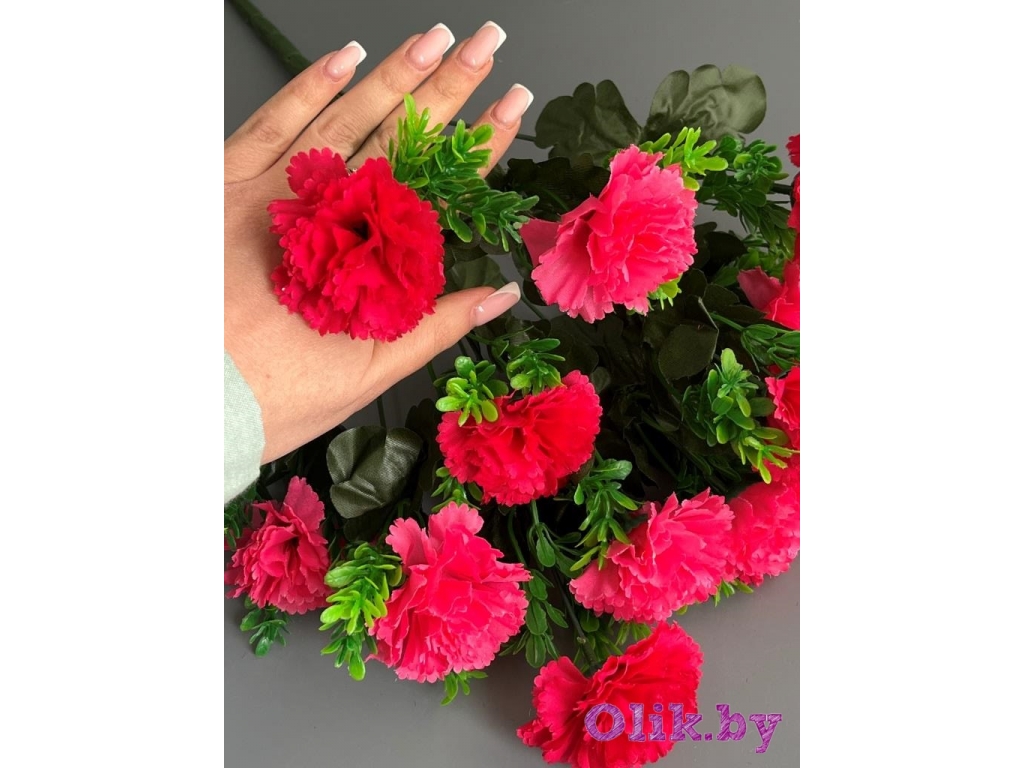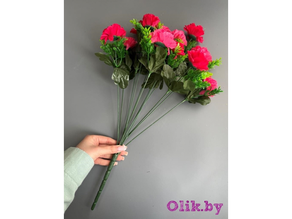 Букет гвоздики 12 веток, 49 см, малиновый