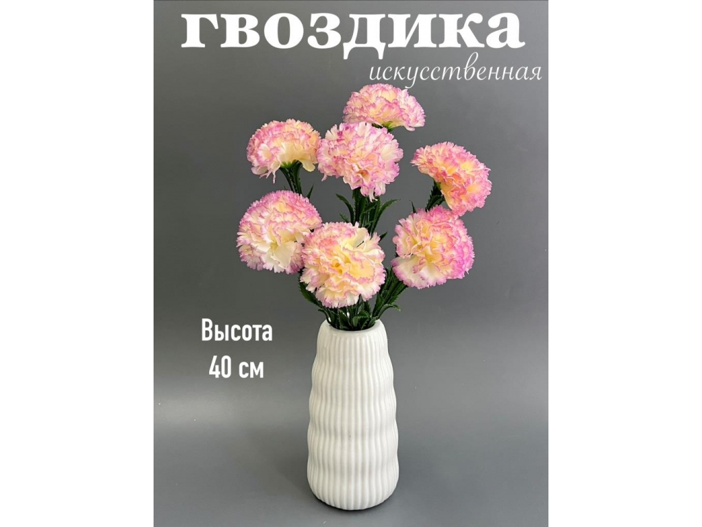 Букет гвоздики 7 веток, 40 см, кремово-сиреневый
