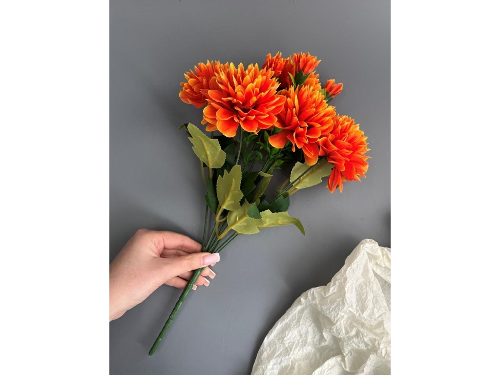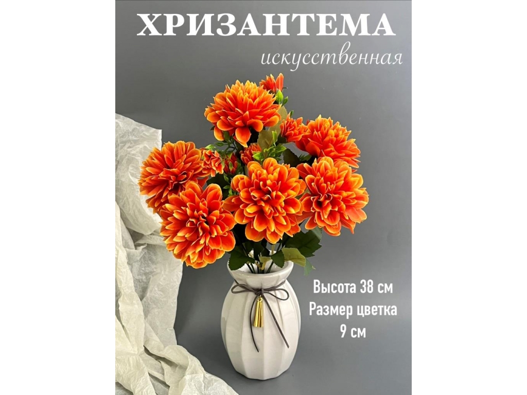 Букет хризантем 9 веток, 38 см, оранжевый