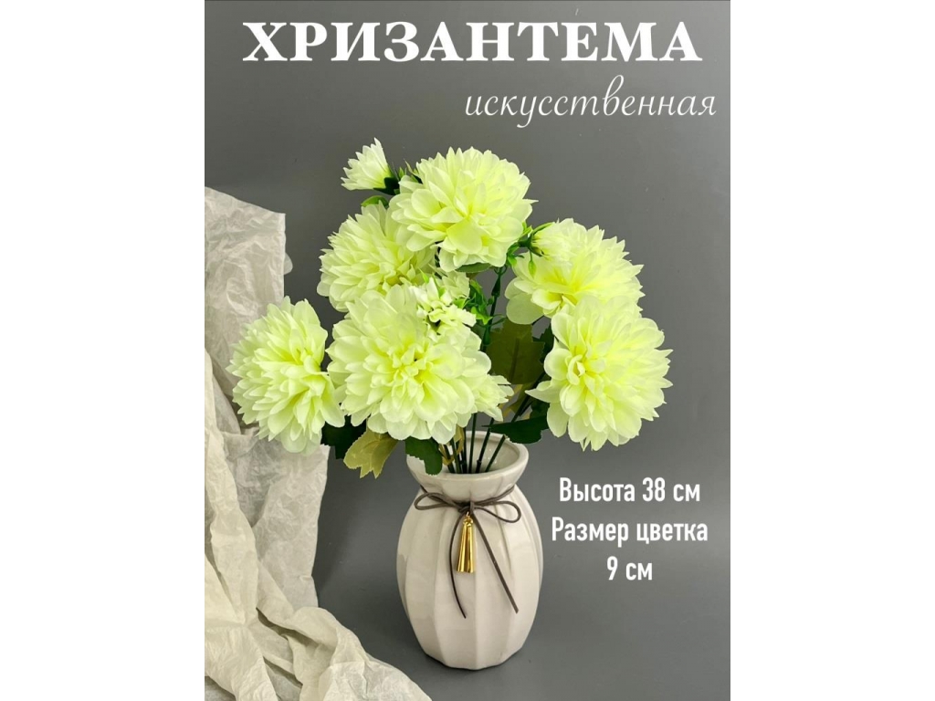 Букет хризантем 9 веток, 38 см, светло-лимонный