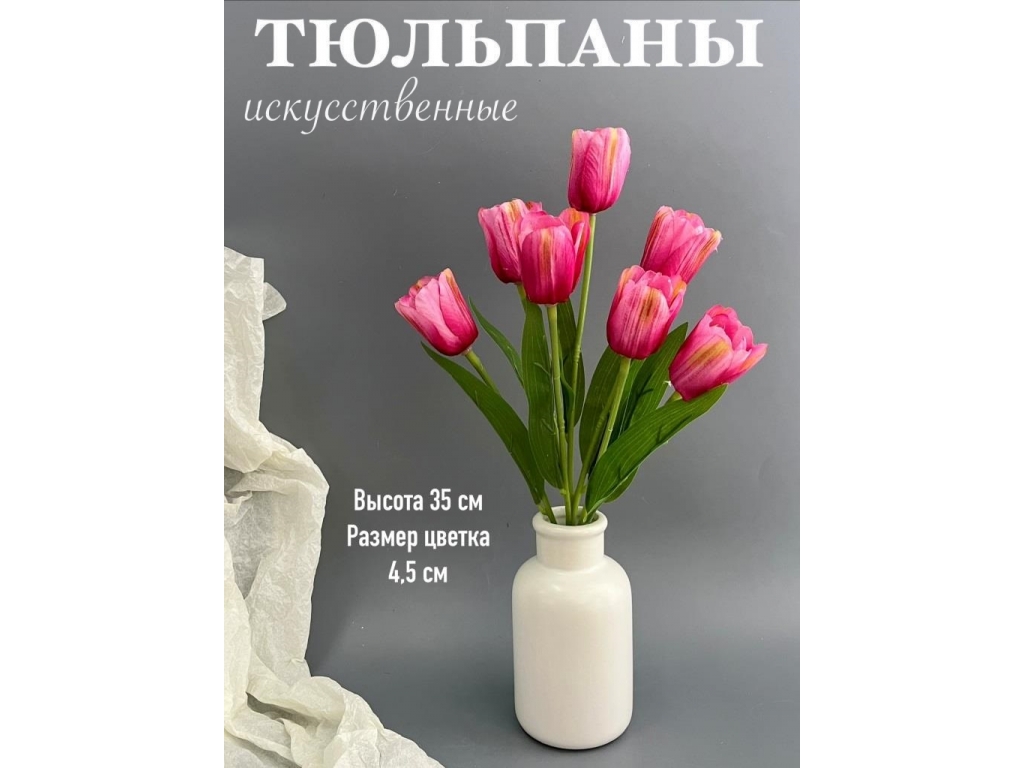 Букет тюльпанов 7 голов, 35 см, фуксия