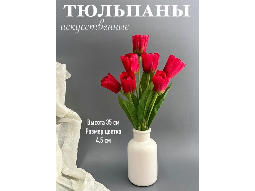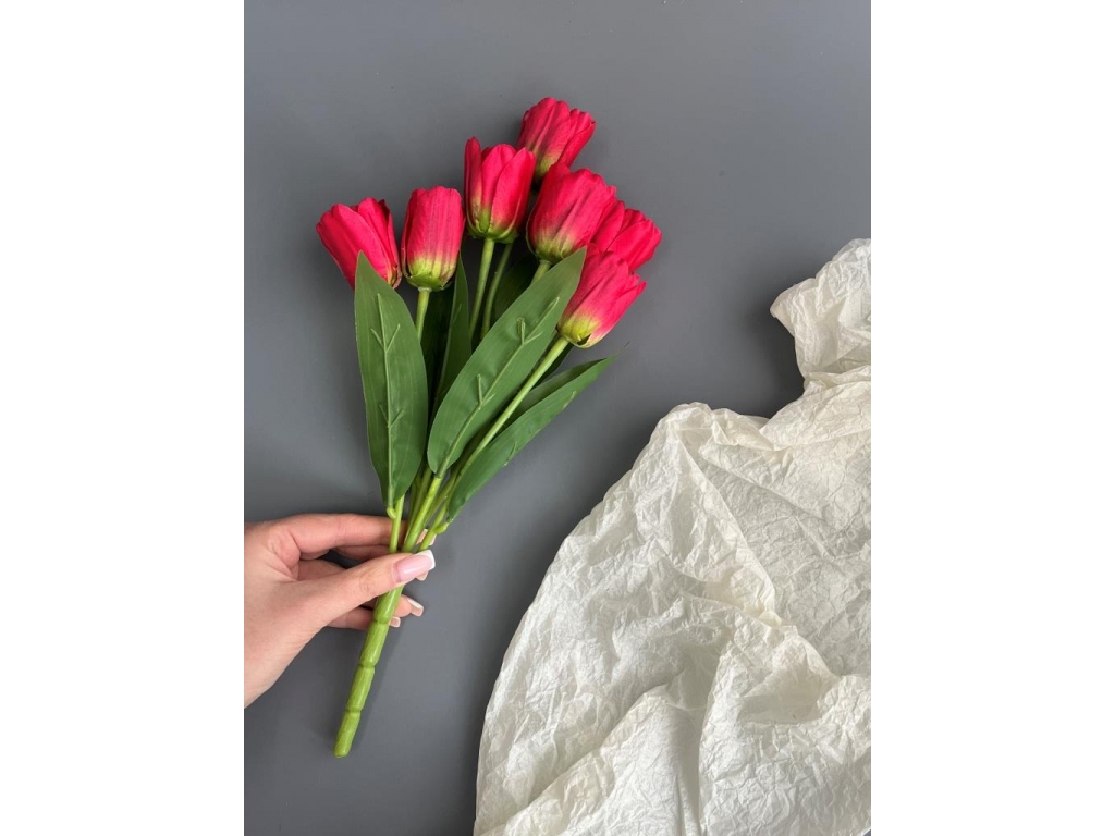 Букет тюльпанов 7 голов, 35 см, малиновый