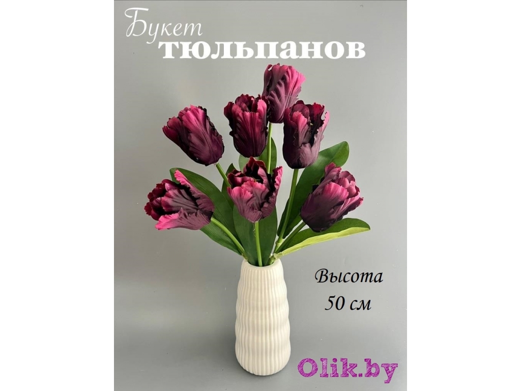 Букет тюльпанов 7 голов, 50 см, темно-сиреневый