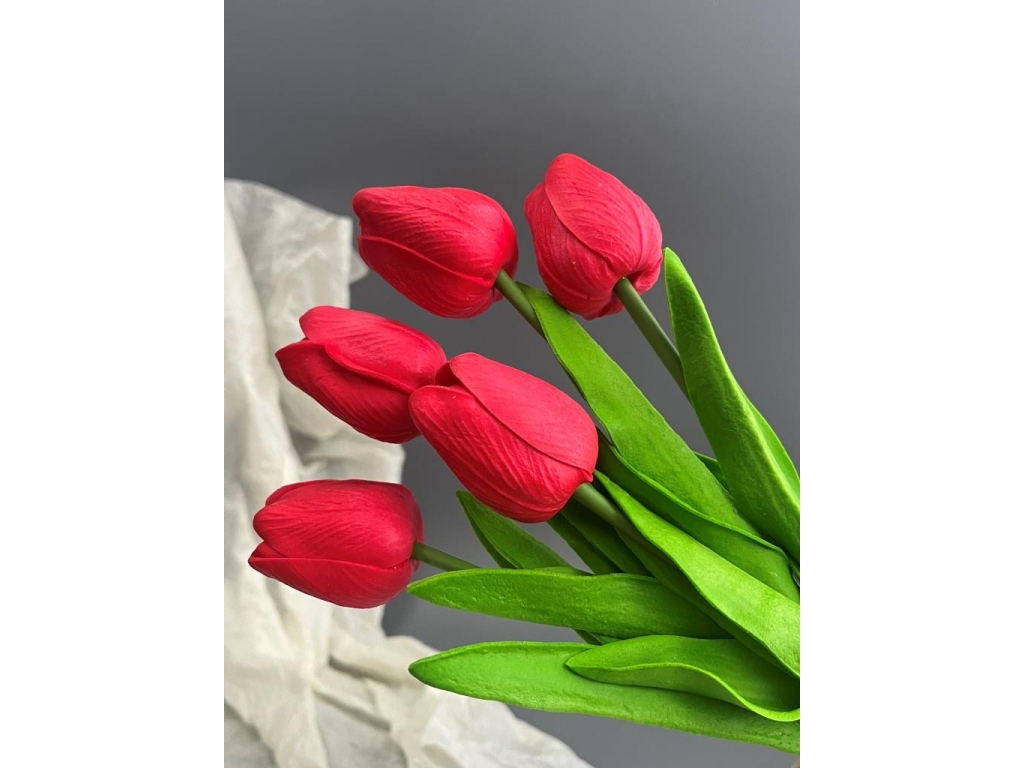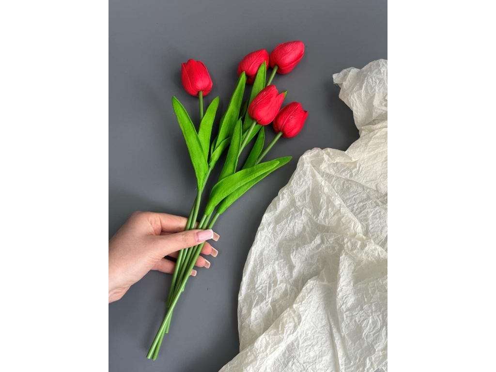 Ветка одиночная тюльпан латекс, 32 см, красный, 5 шт