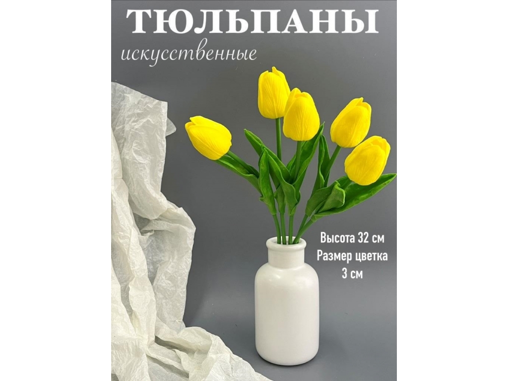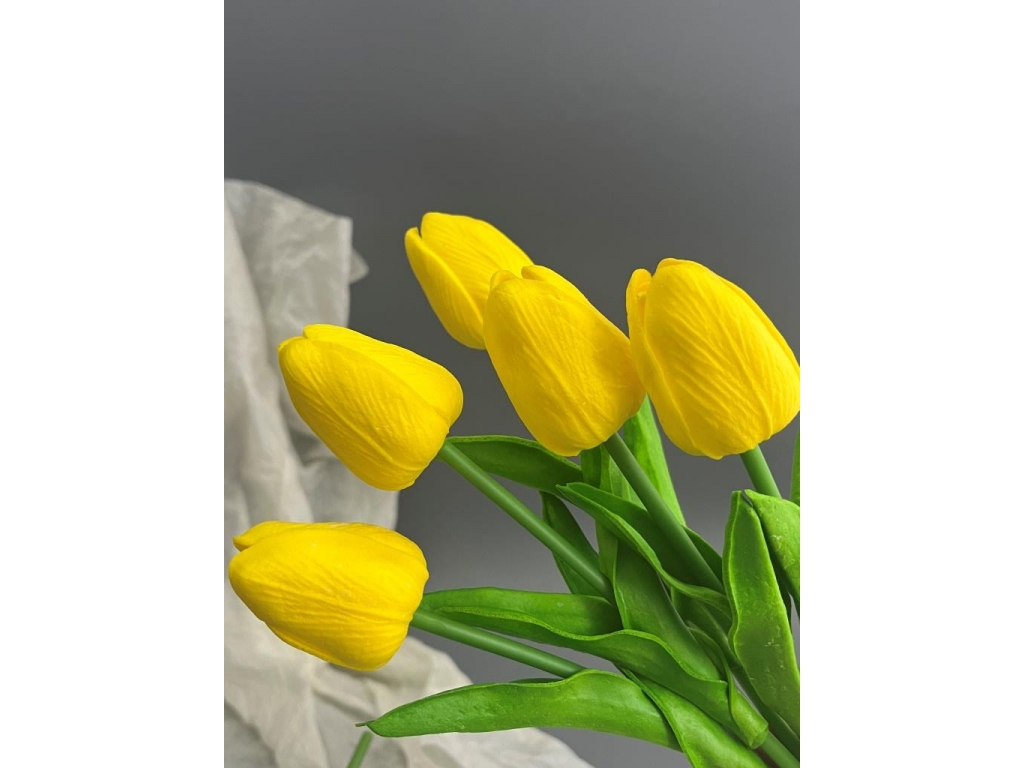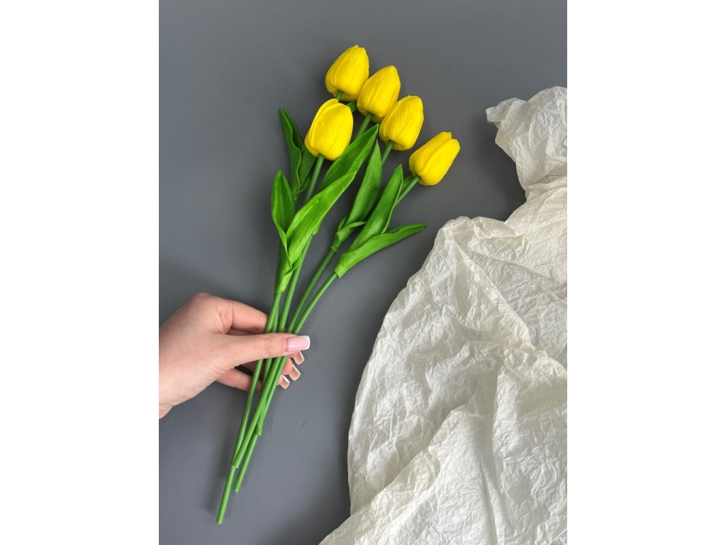 Ветка одиночная тюльпан латекс, 32 см, желтый, 5 шт