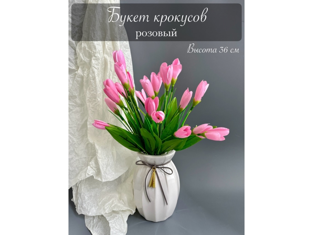 Ветка в букете крокус 7 веток, 36 см, розовый
