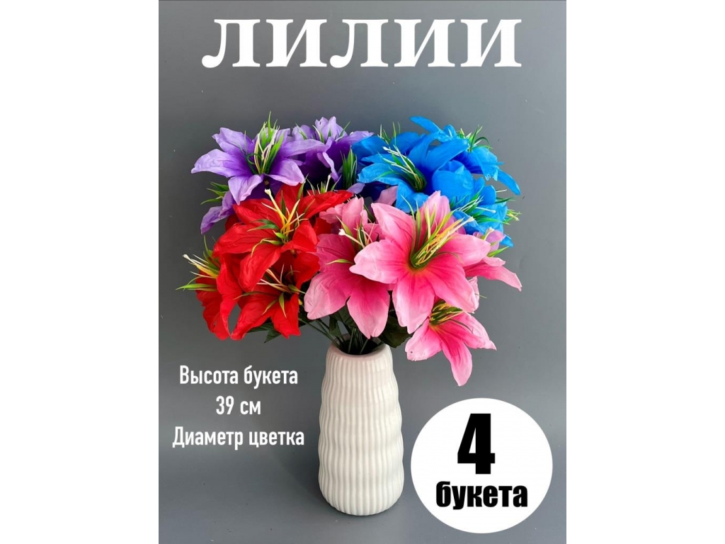 Букет лилия 6 голов, 39 см, микс 2, 4шт