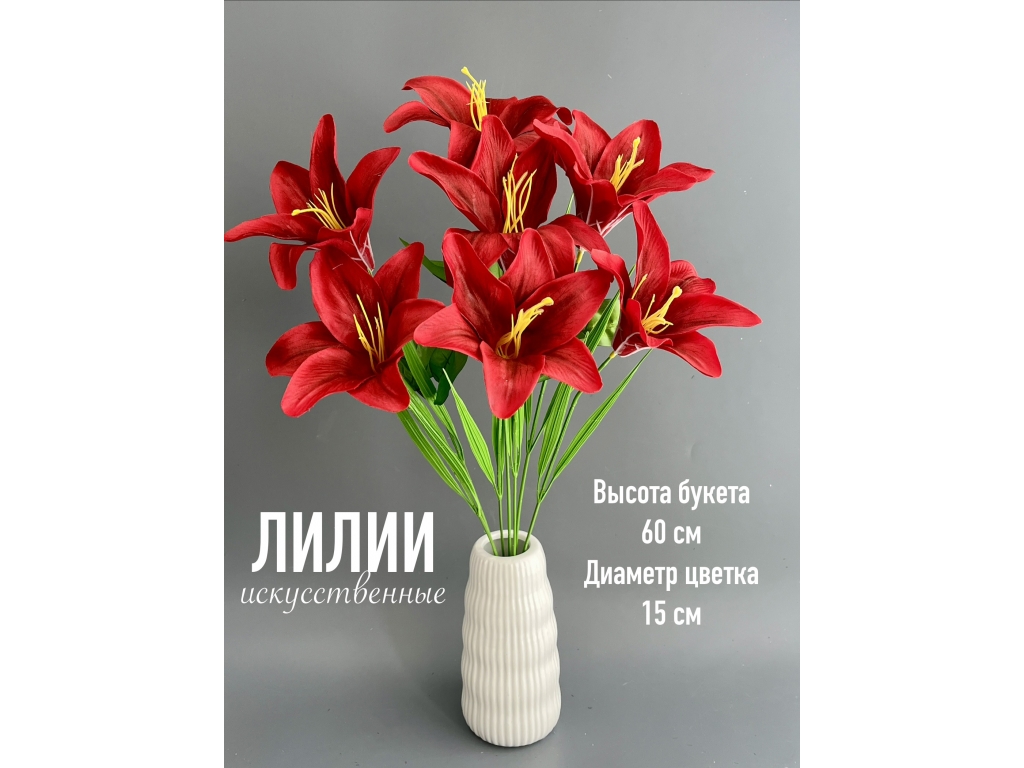 Букет лилия 7 голов, 60 см, красный