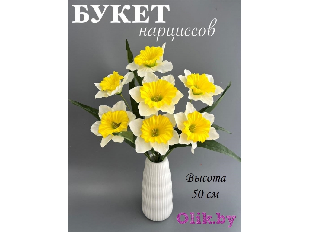 Букет нарциссов 7 голов, 50 см, белый-желтый