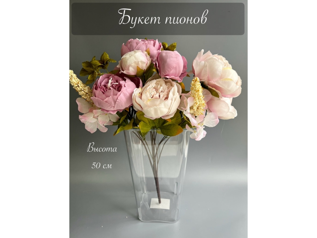 Ветка в букете пион 50 см, розовый