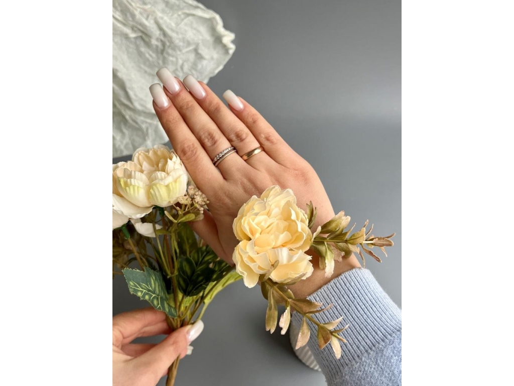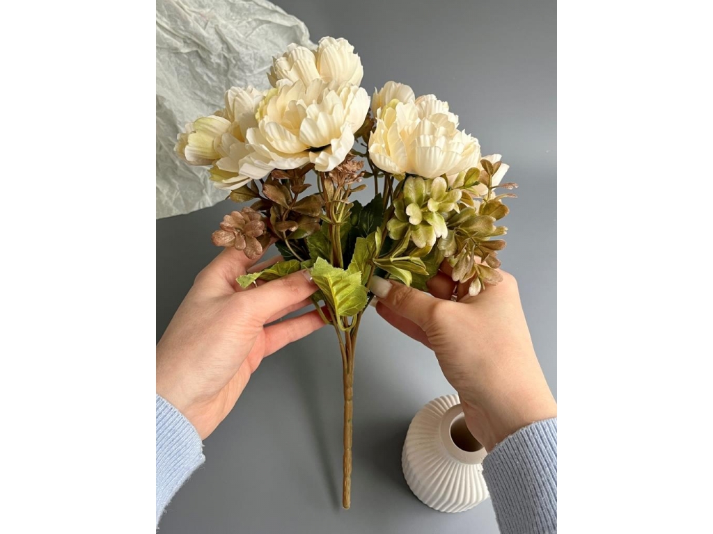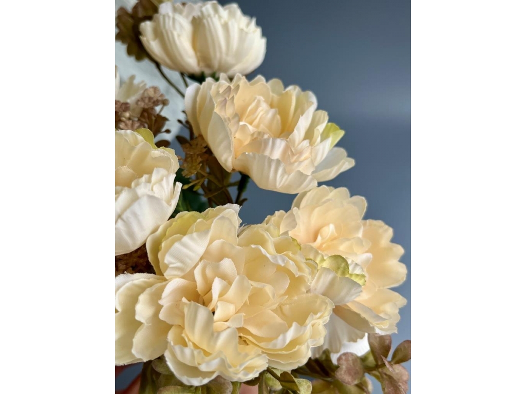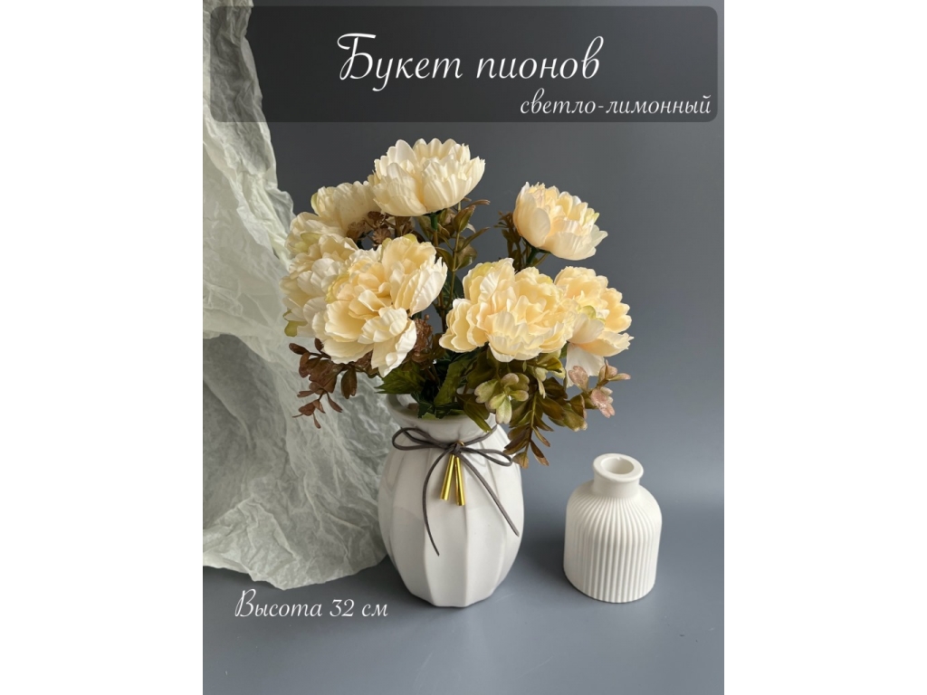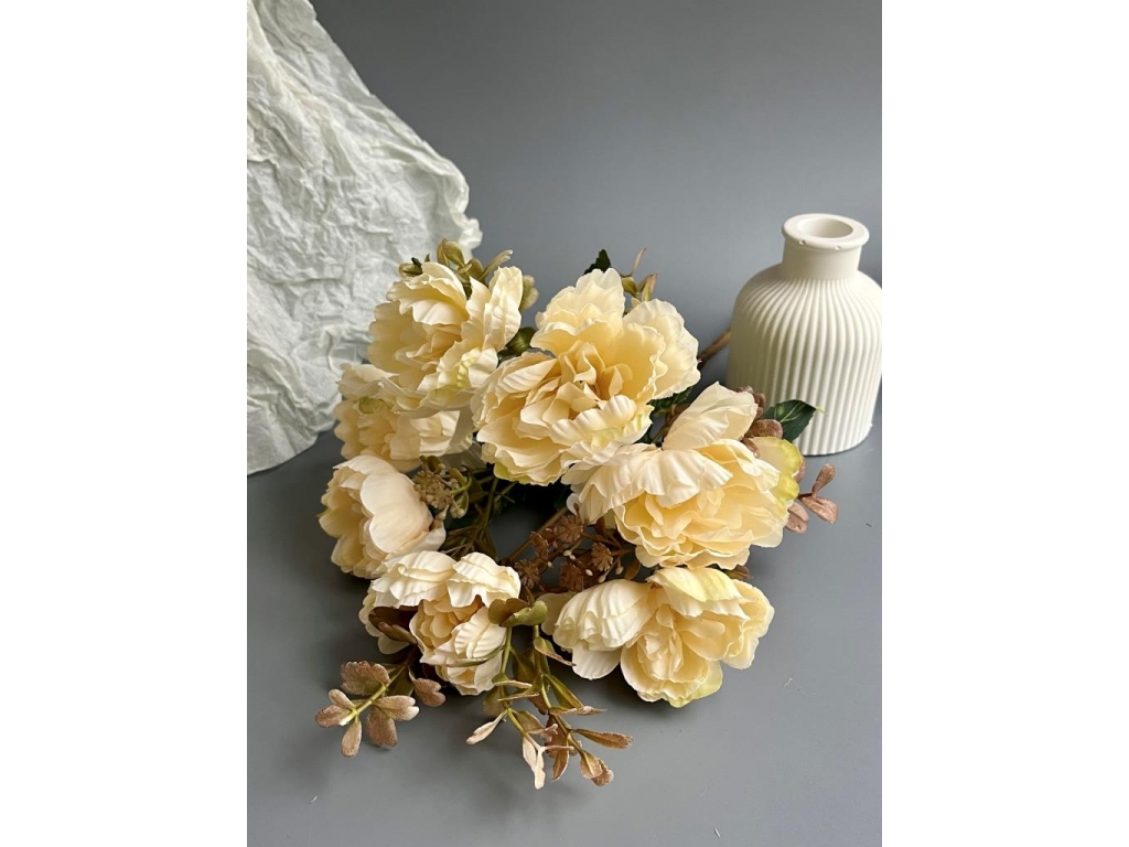 Ветка в букете пион 7 веток, 32 см, светло-лимонный