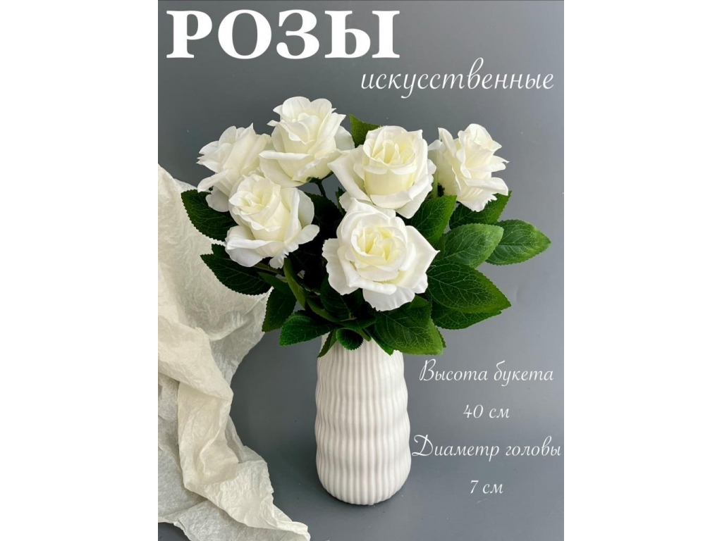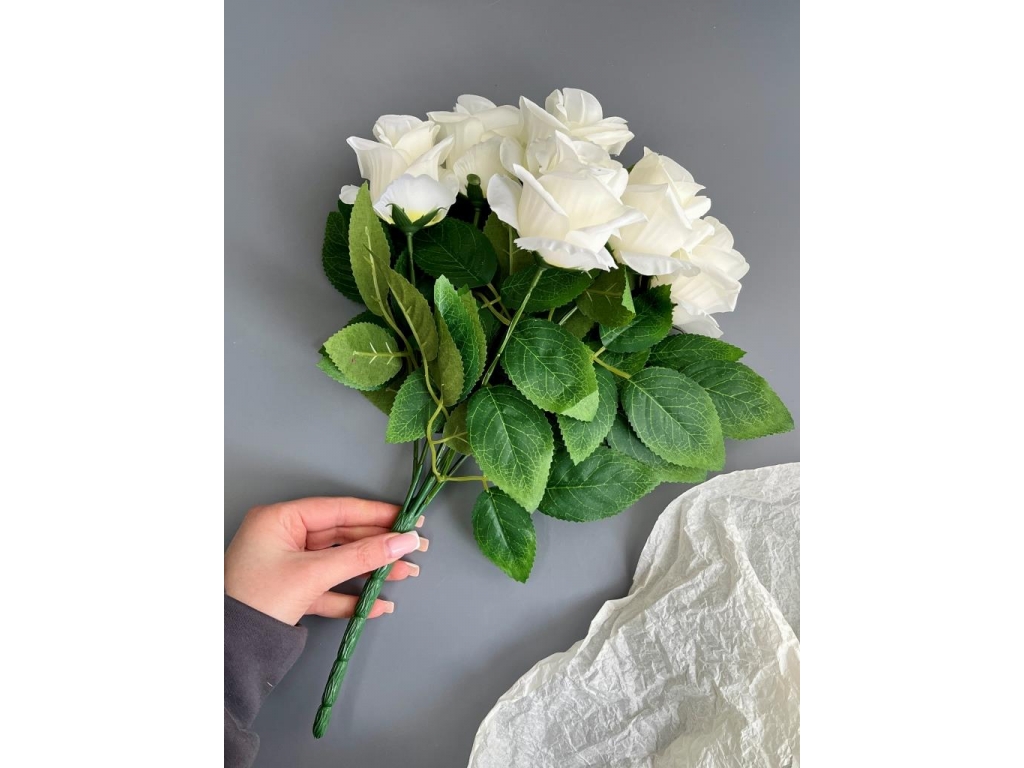 Букет бутон роз 6 голов, 40 см, белый