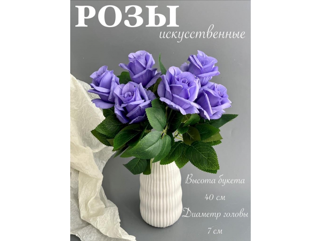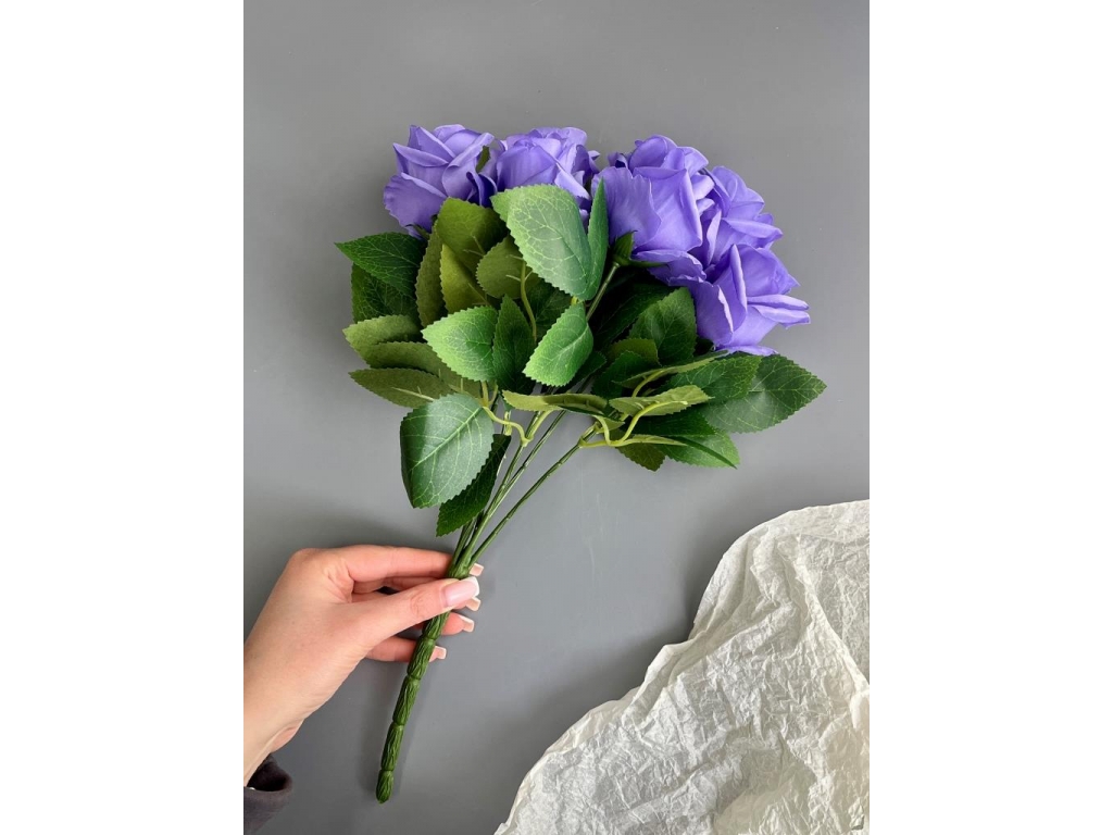 Букет бутон роз 6 голов, 40 см, фиолетовый