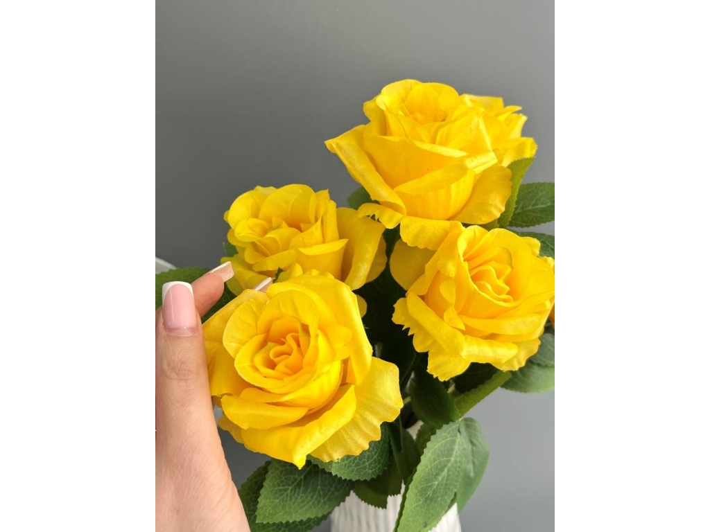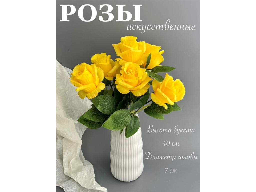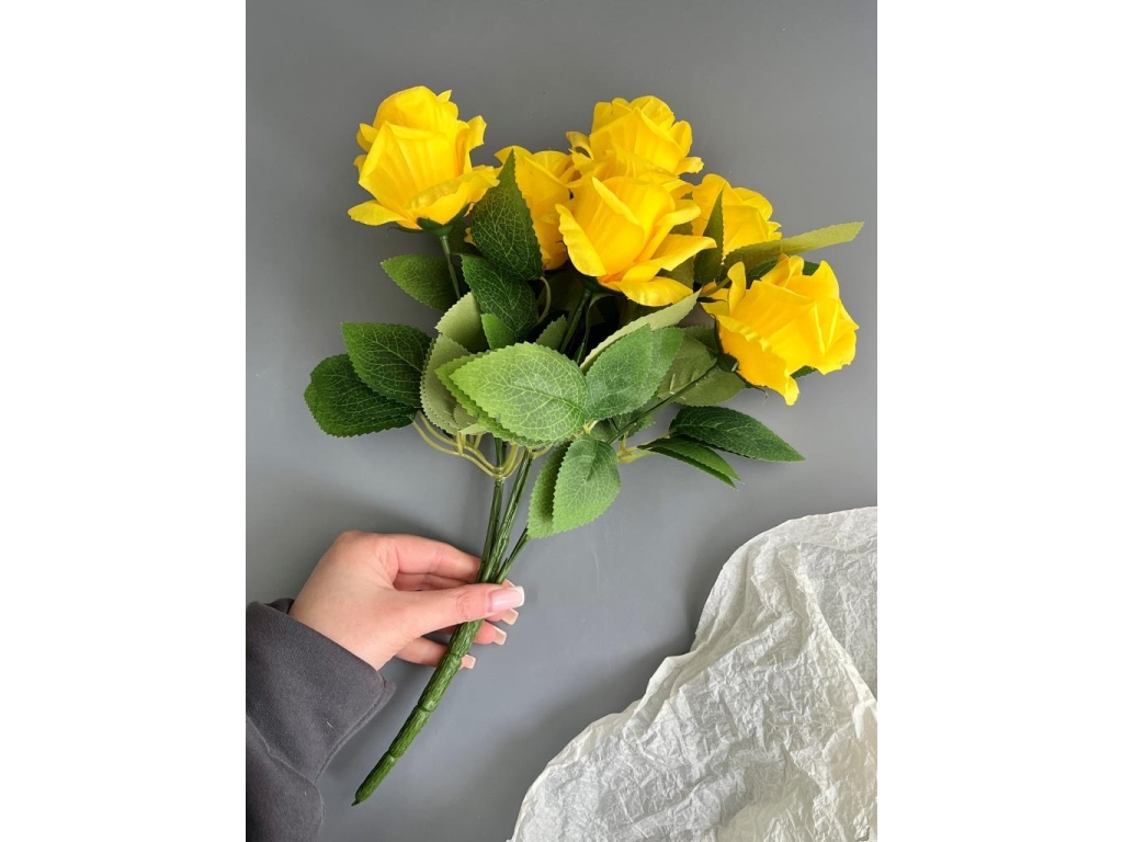 Букет бутон роз 6 голов, 40 см, желтый
