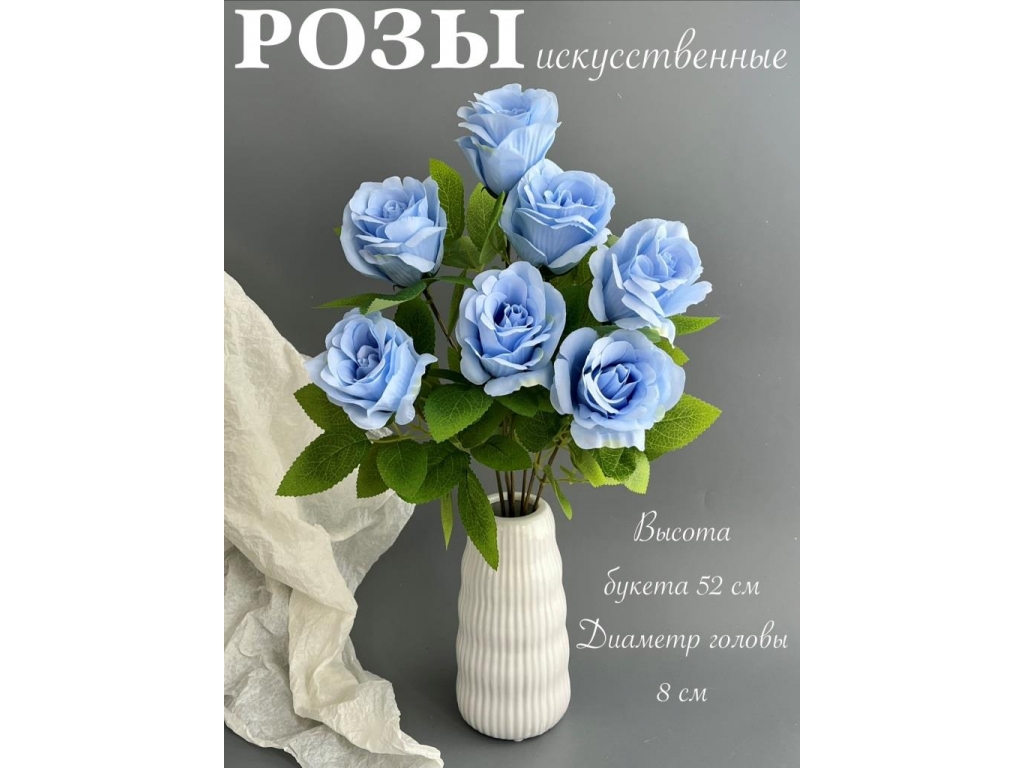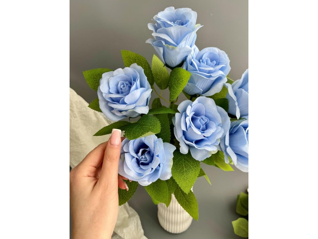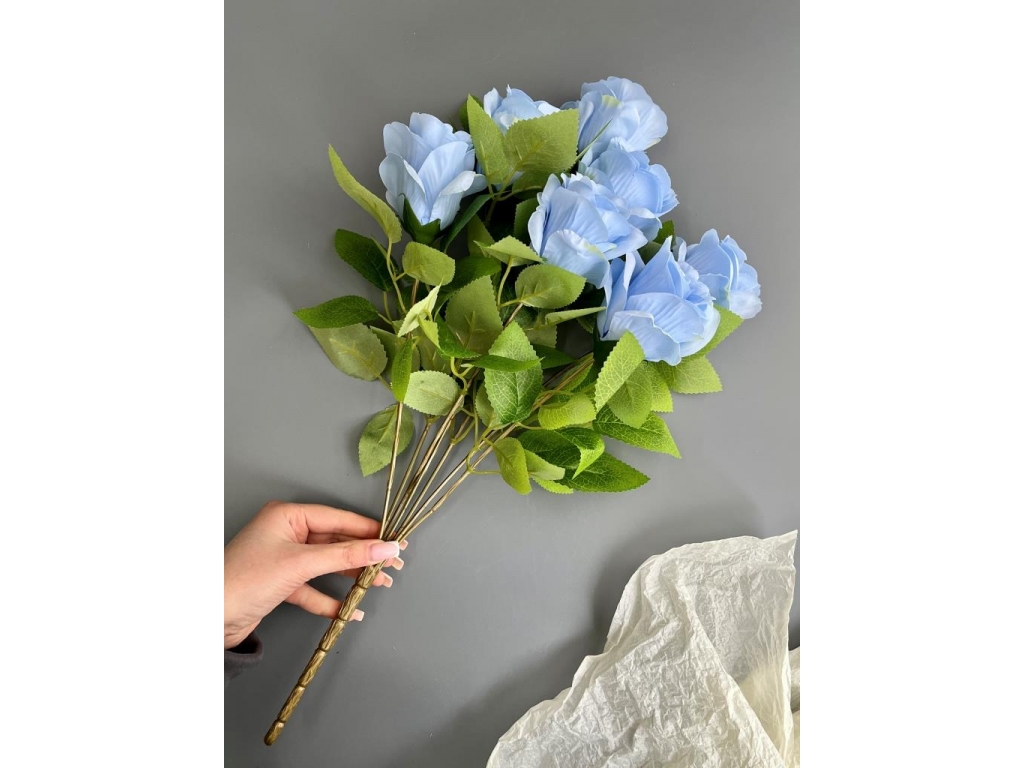 Букет бутон роз 7 голов, 52 см, голубой