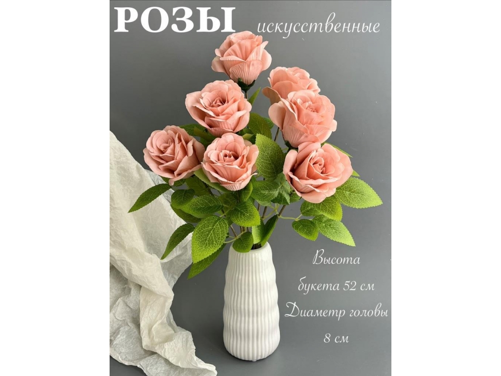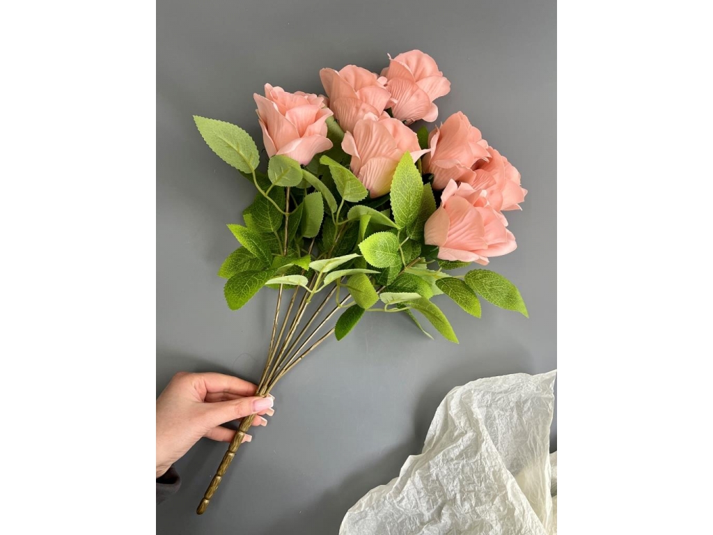 Букет бутон роз 7 голов, 52 см, розовый