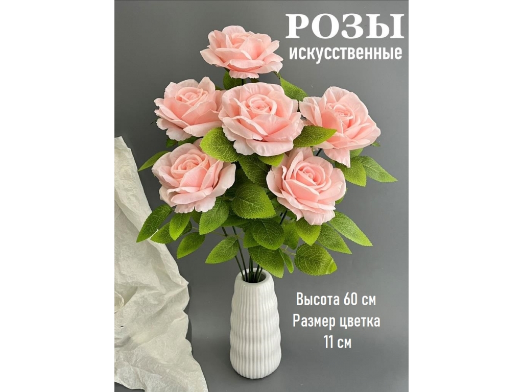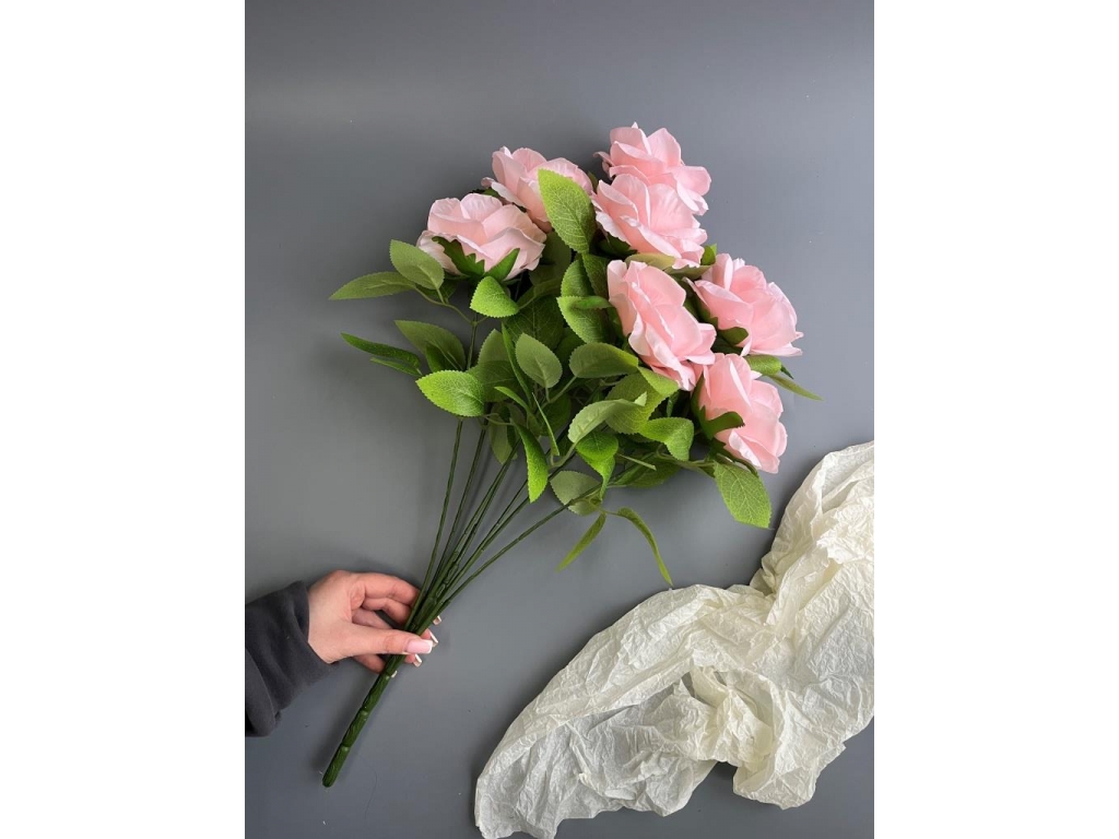 Букет бутон роз 7 голов, 60 см, нежно-розовый