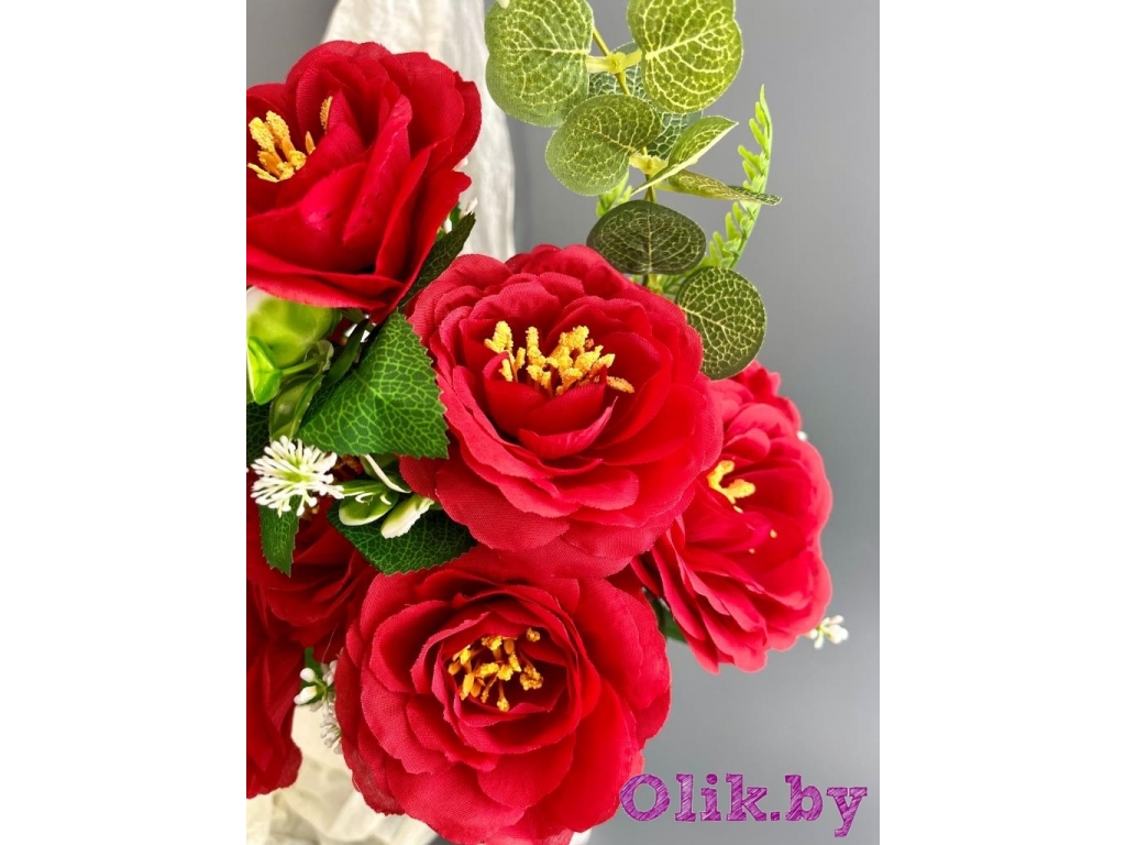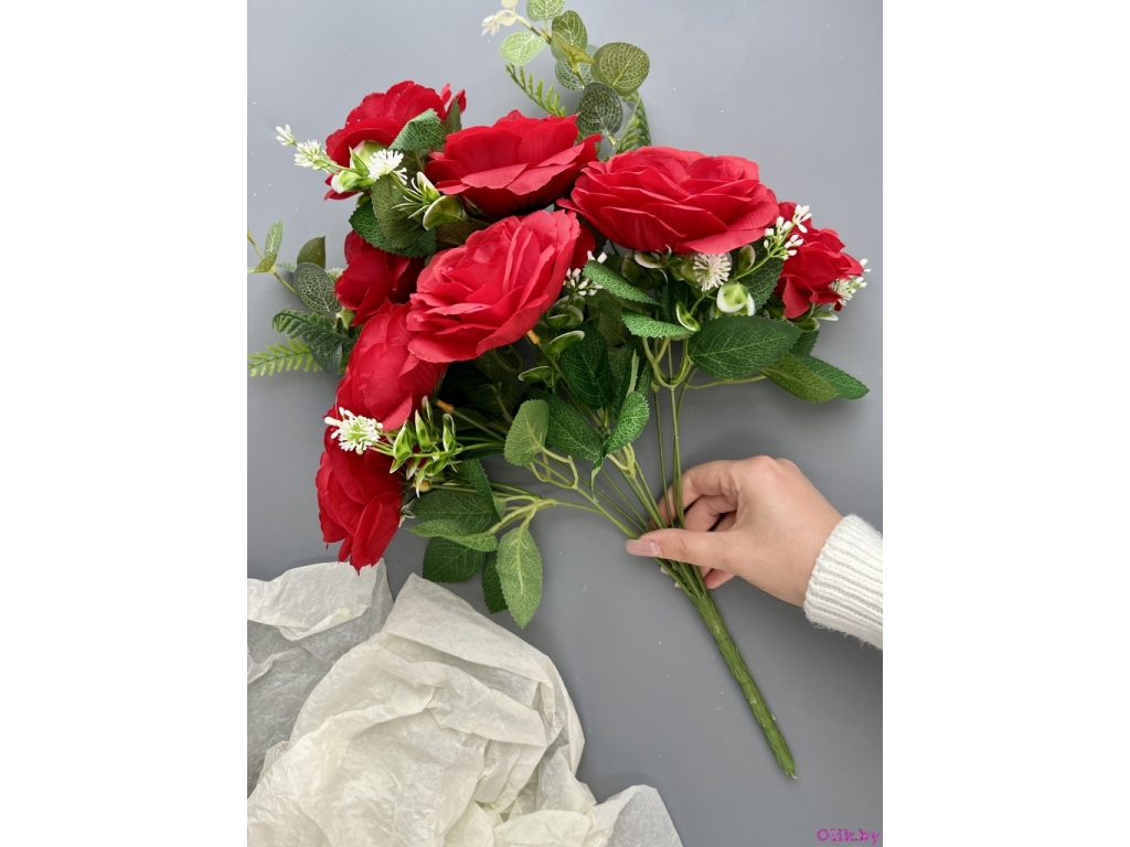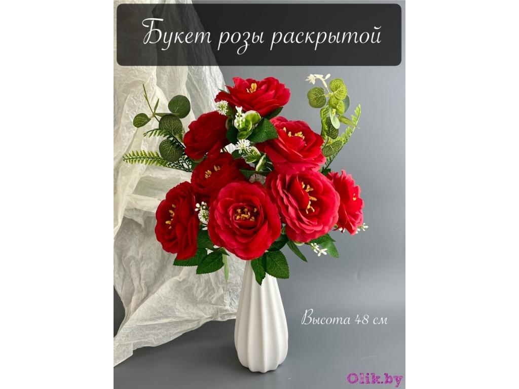 Букет розы раскрытой 8 голов 48 см, красный