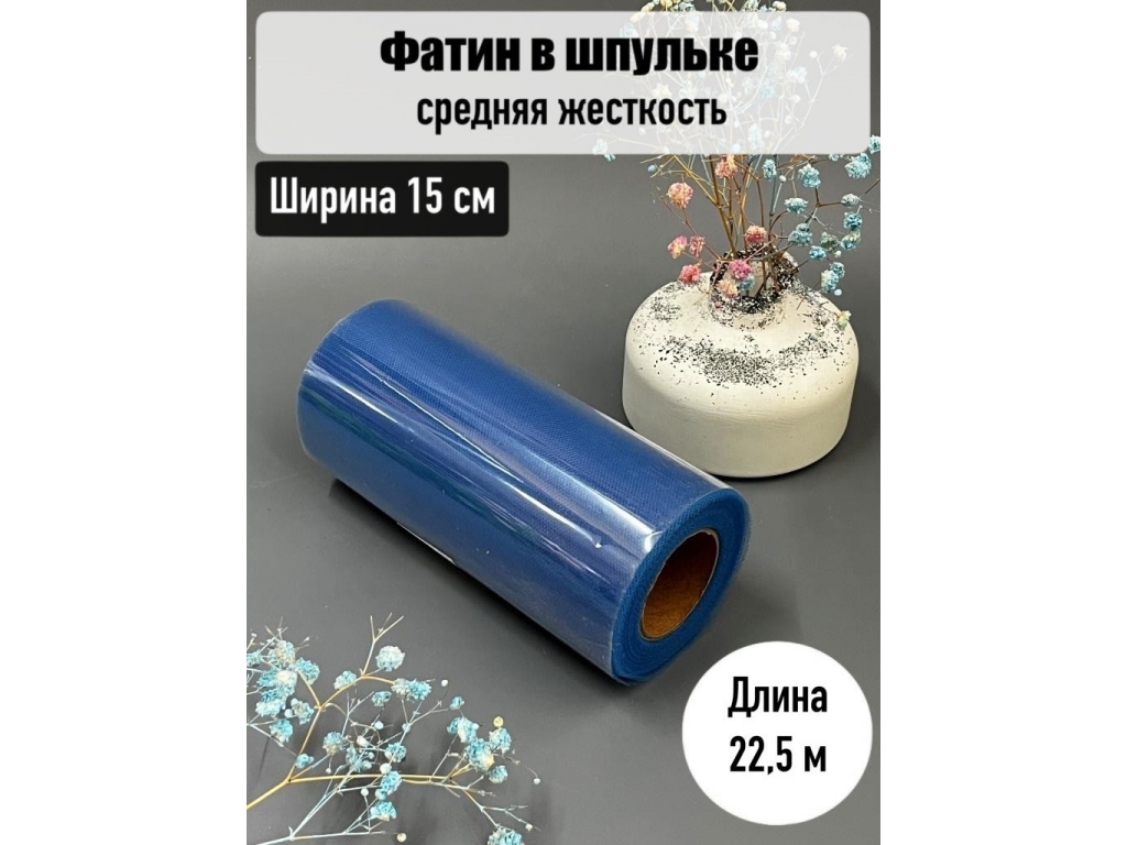 Фатин, ширина 15 см, синий, 23 м