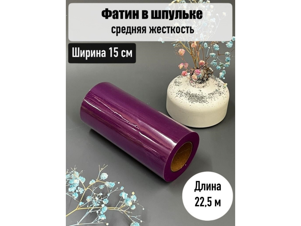 Фатин, ширина 15 см, темно-сиреневый, 23 м