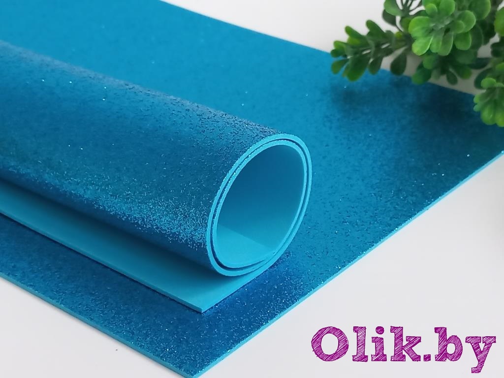 Фоамиран глиттерный А4, 2 мм Premium, голубой №19