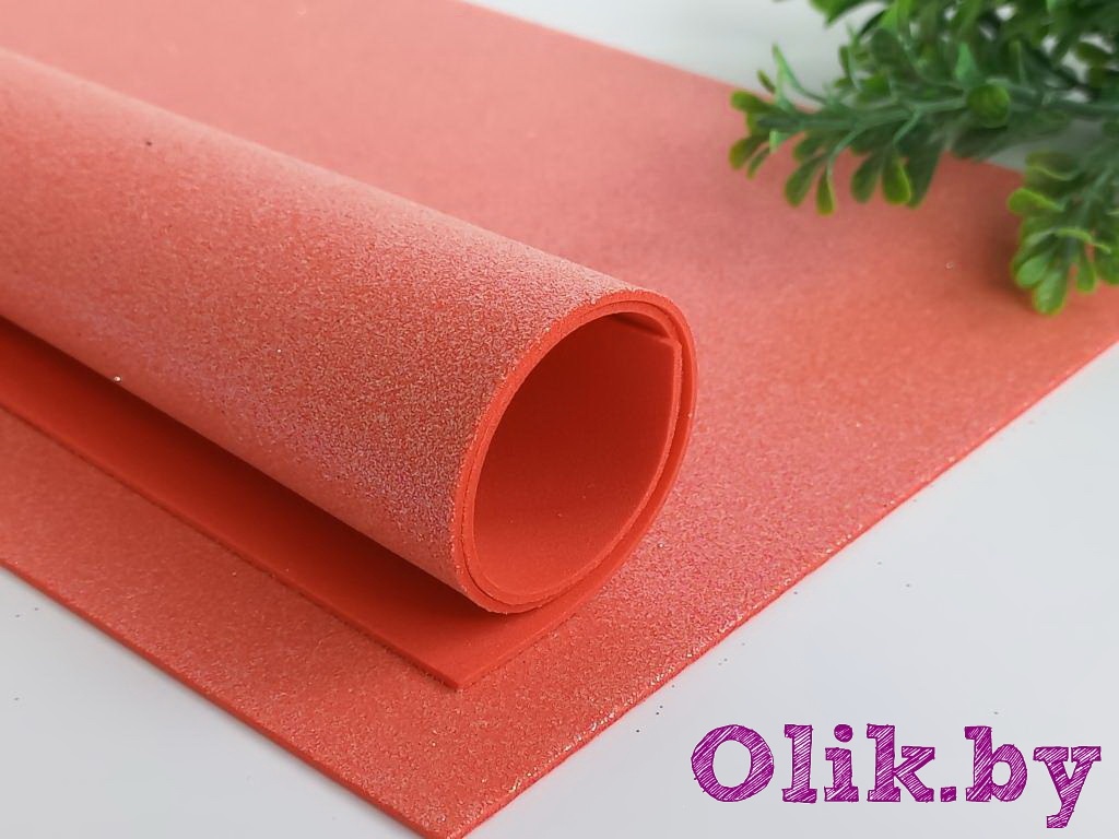 Фоамиран глиттерный А4, 2 мм Premium, коралловый