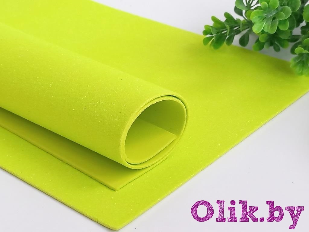 Фоамиран глиттерный А4, 2 мм Premium, лаймовый №46