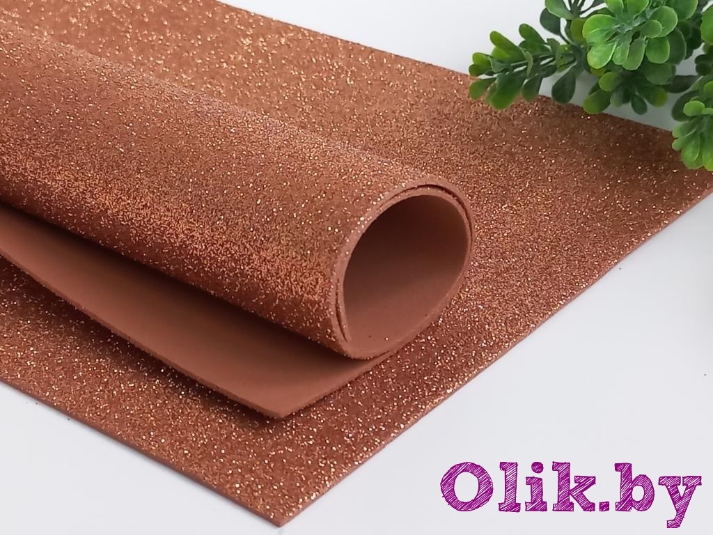 Фоамиран глиттерный А4, 2 мм Premium, коричневый