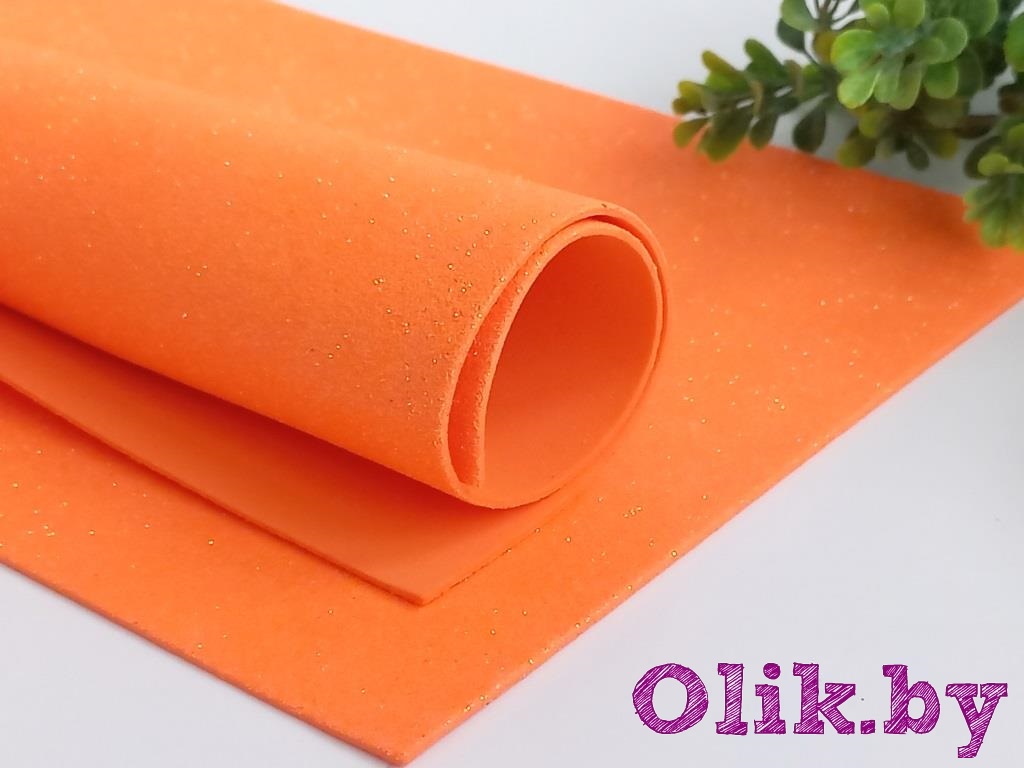 Фоамиран глиттерный А4, 2 мм Premium, оранжевый перламутр