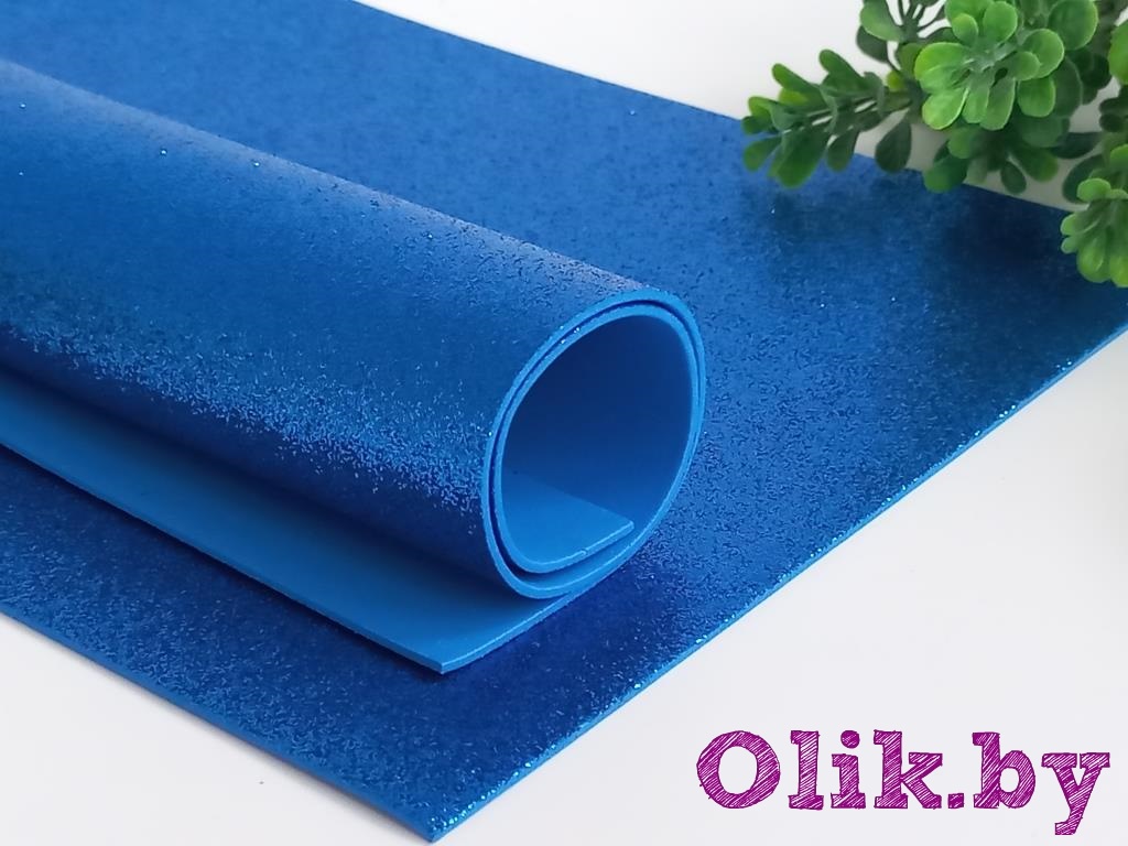 Фоамиран глиттерный А4, 2 мм Premium, синий №008