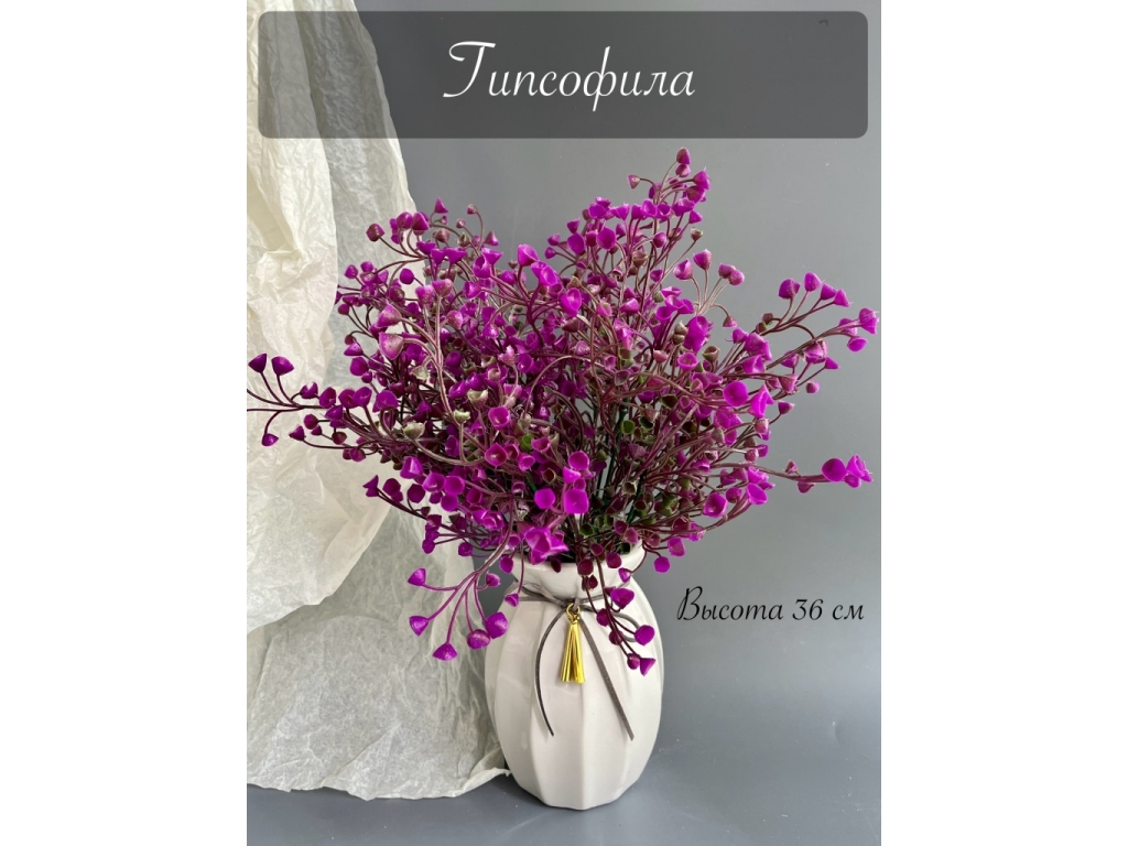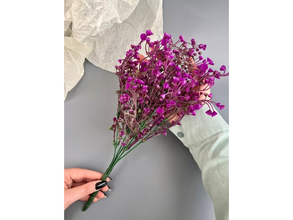 Ветка в букете зелени гипсофила, 36 см, сиреневый