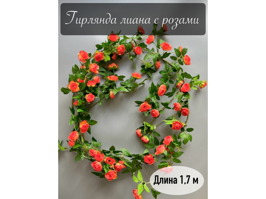 Гирлянда лиана роза мелкая 1,7м, красный комби