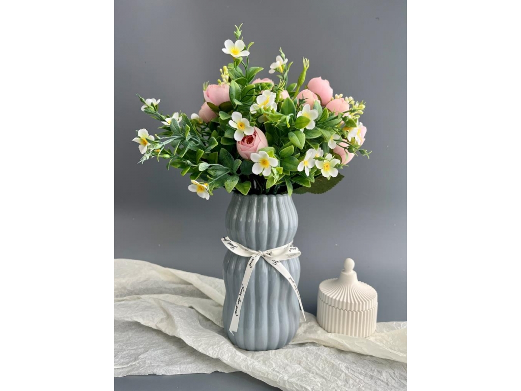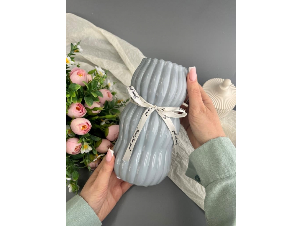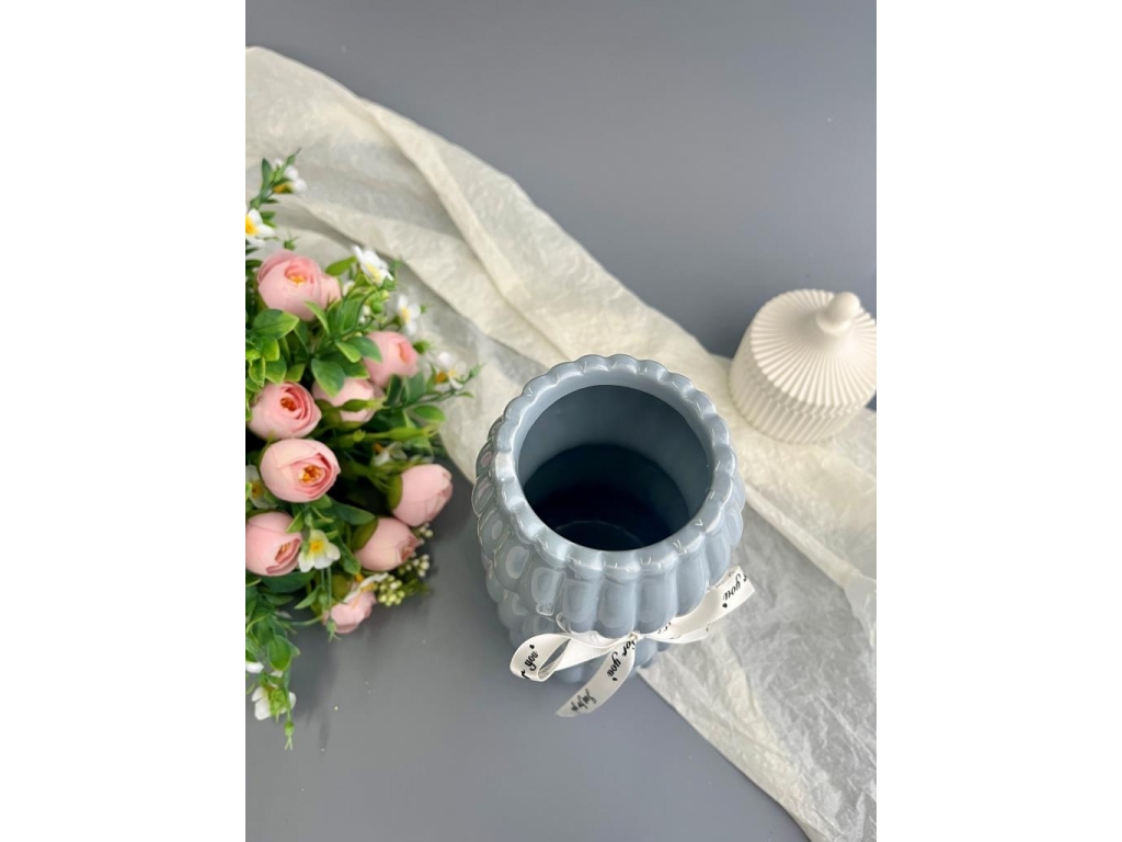 Ваза из керамики, 18*7см, серый, 1шт