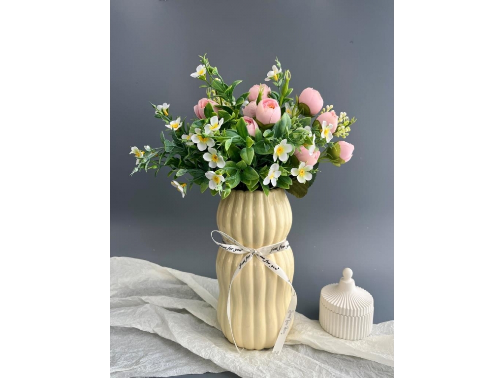 Ваза из керамики, 22*8,5см, кремовый, 1шт