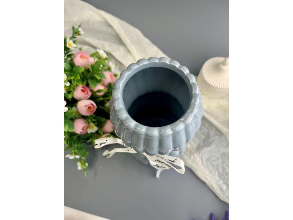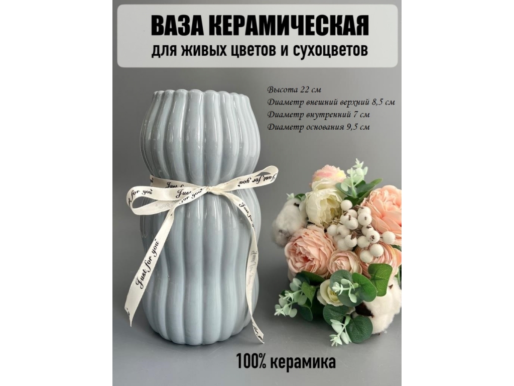 Ваза из керамики, 22*8,5см, серый, 1шт