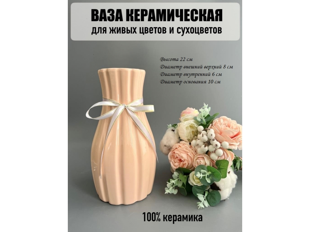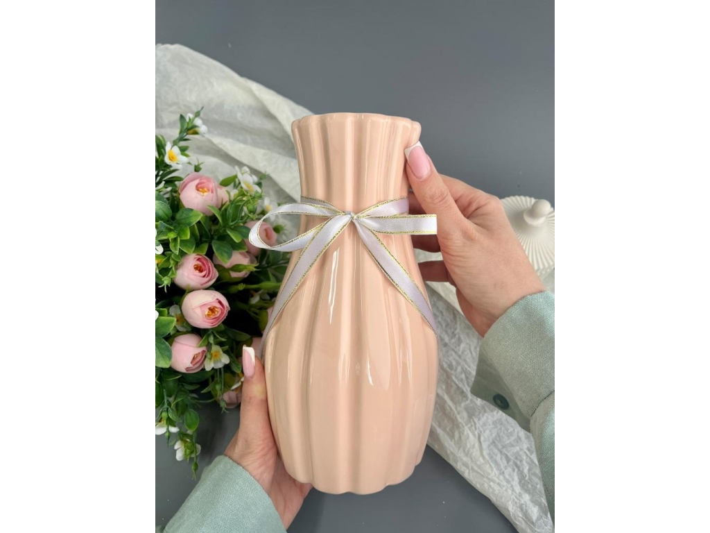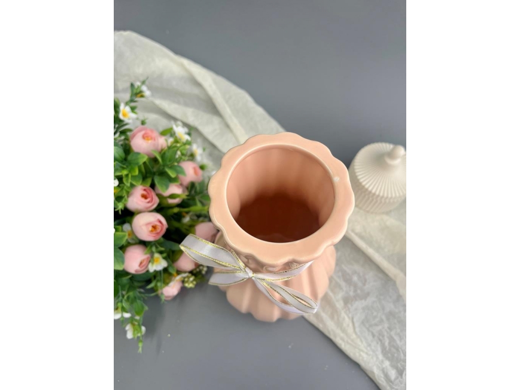 Ваза из керамики, 22*8см, розовый, 1шт